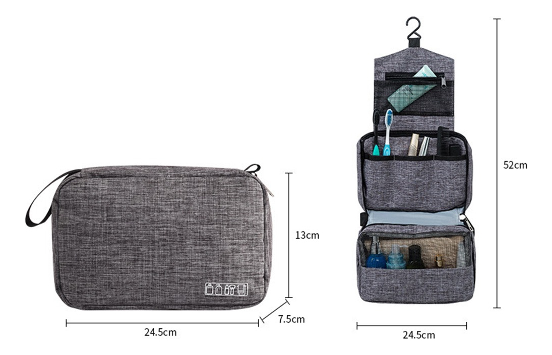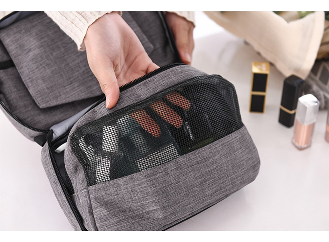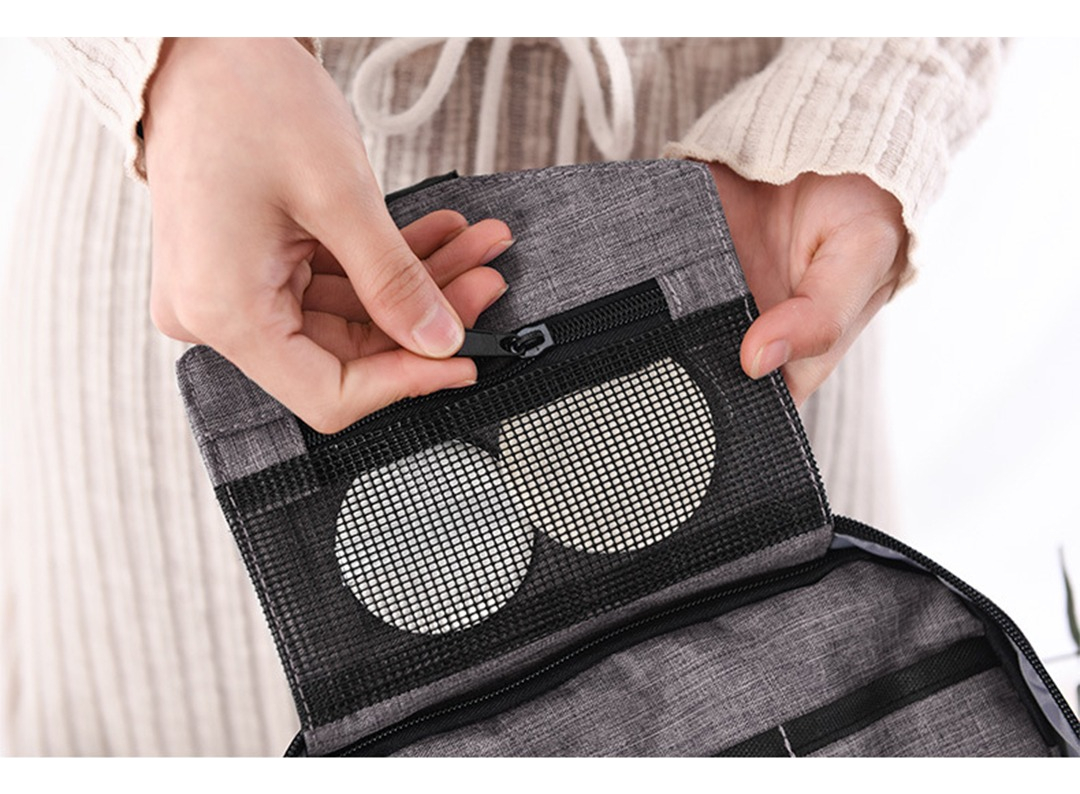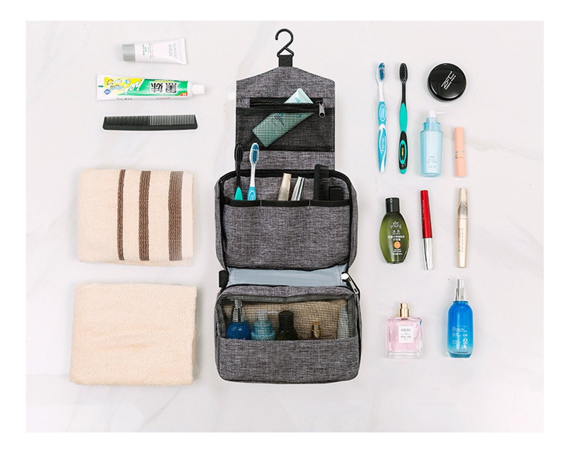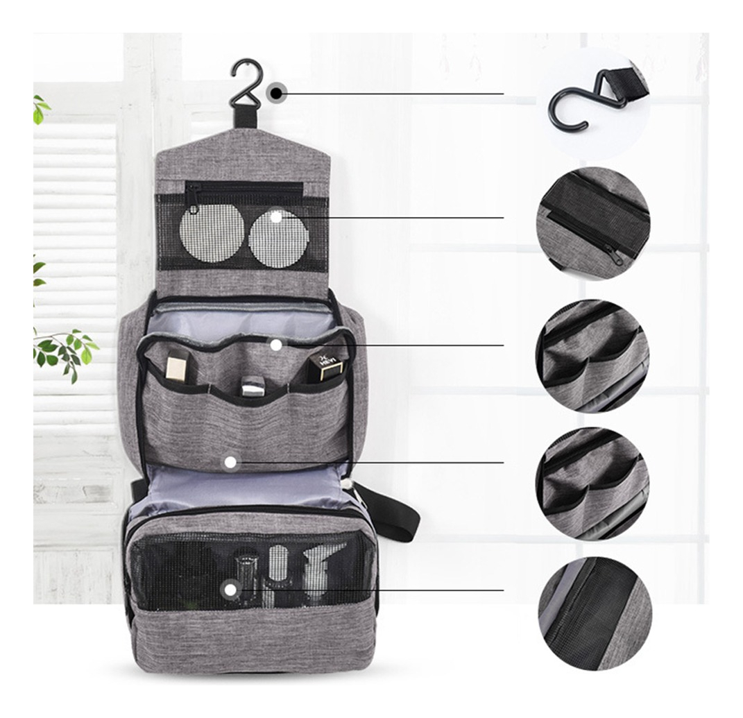 Neceser de baño con percha para colgar de cualquier objeto. Este diseño de neceser te permite colgarlo fácilmente, para poder mantener tus cosas lejos de las superficies húmedas. Práctico para valija como para mochila. Posee reparticiones para llevar todo en orden y cómodo. Es impermeable así que viajaras con el equipaje seguro.