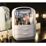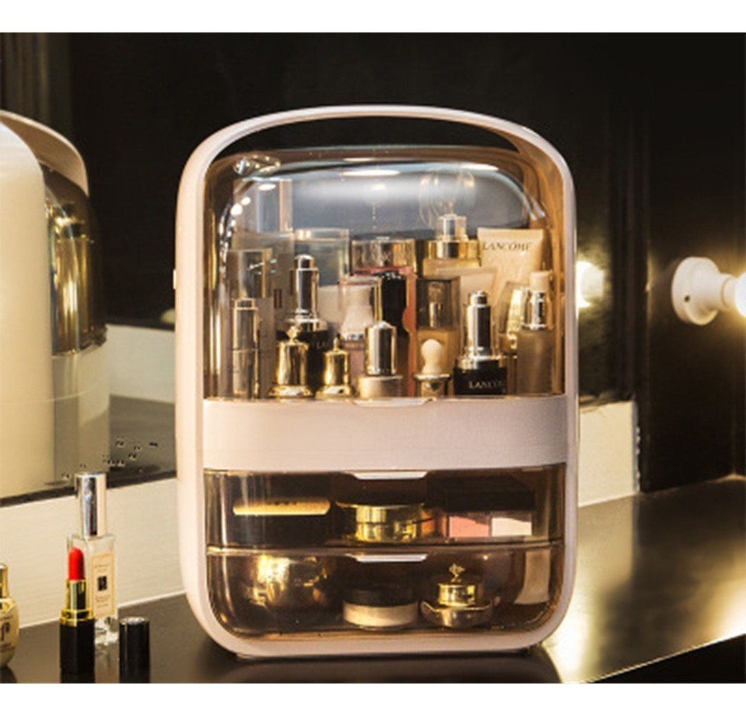 Especificaciones: Hecho de acrílico de alta calidad, resistente al desgaste, práctico y duradero. Puedes poner tu lápiz labial, perfume y emulsión en la parte superior. Con dos cajones grandes, es a prueba de polvo y a prueba de humedad. Apto para baño, sala de estar y cocina.