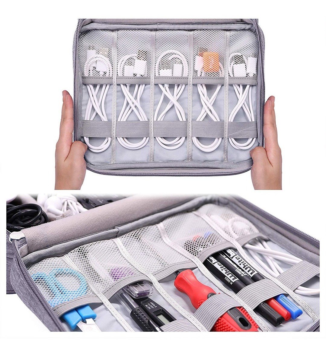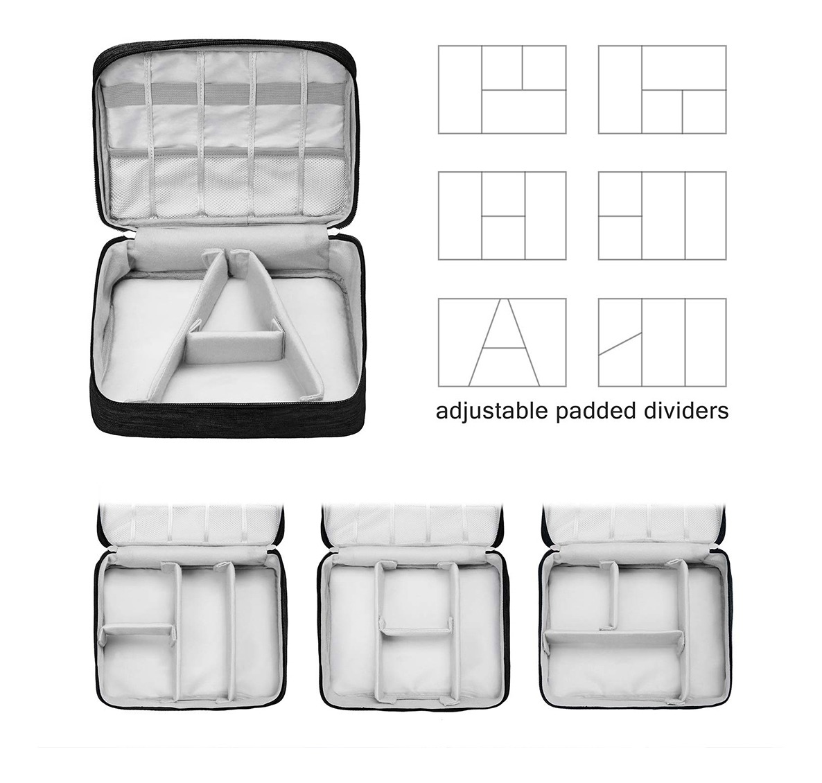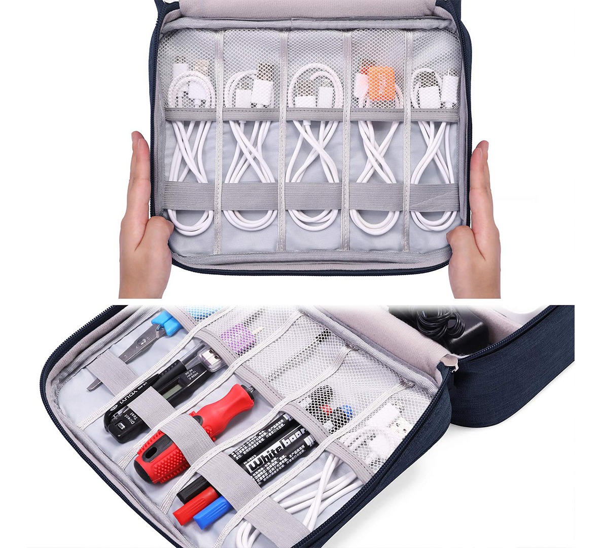 – Esta bolsa electrónica de viaje está hecha de nylon resistente, duradero y resistente al agua. Tejido, fácil de limpiar. El cierre con cremallera bidireccional asegura su artículo.