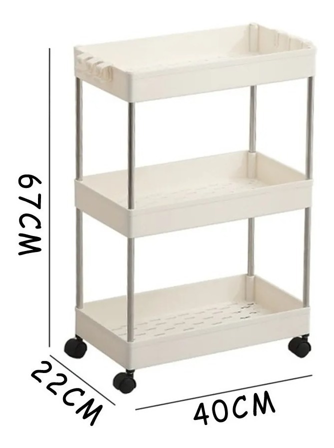 IMPORTANTE!!! La primer foto es a modo demostrativo, el precio publicado es por el organizador de tres estantes, no el de cuatro como la primera foto. La segunda foto es la del de tres estantes. Material: Plástico Tamaño del producto: 67 x 40 x 22cm Distancia entre estantes: 20 cm aproximadamente
