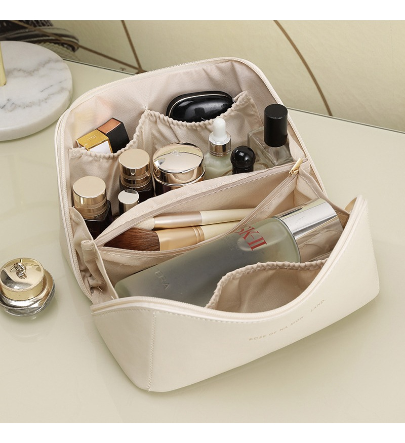 Organizador estuche cosmético, práctico y funcional, ideal para almacenamiento de productos de belleza y cuidado personal. Perfecto para viajes, con compartimentos que permiten mantener todo organizado y accesible. Hecho con materiales resistentes, cuenta con cierre para mayor seguridad. Es compacto y fácil de transportar, garantizando que tus productos estén siempre a la mano sin ocupar mucho espacio. Ideal para maquillaje, cremas, perfumes y más.