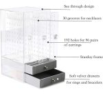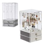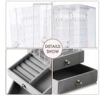 Organizador exhibidor de joyas con diseño elegante, ideal para mantener tus accesorios organizados y a la vista. Hecho de material plástico PS de alta calidad, 100% nuevo y resistente. Cuenta con un cajón para almacenamiento adicional y es a prueba de polvo, lo que asegura la protección de tus joyas y objetos delicados. Su estilo japonés lo convierte en una pieza moderna y funcional, perfecta para cualquier espacio de almacenamiento. Ideal para joyas, relojes, anillos, y más