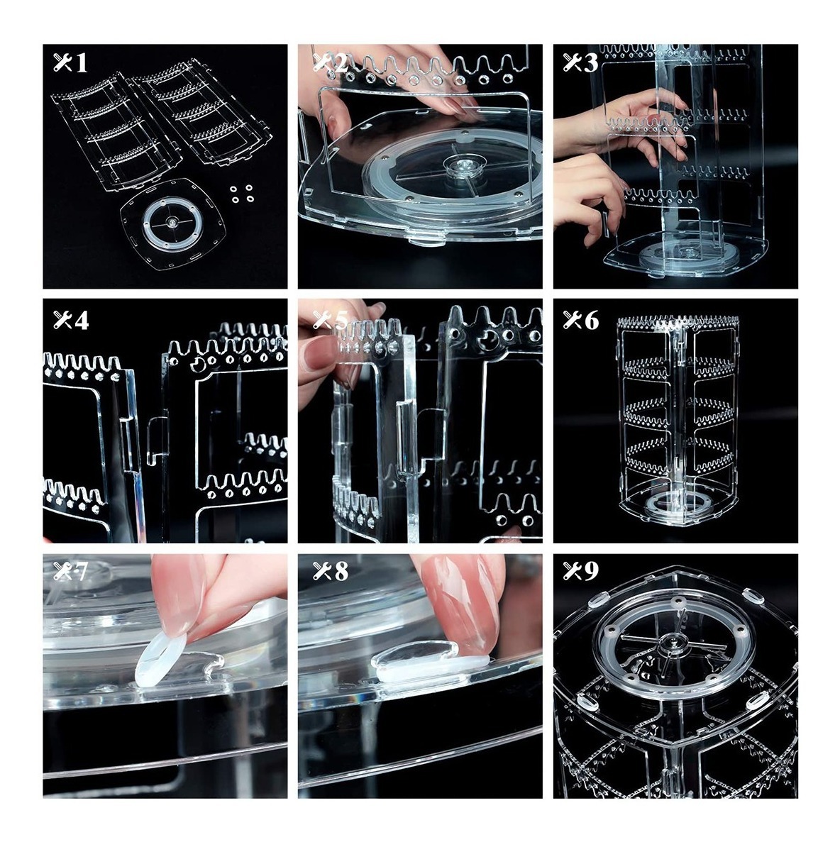 Organizador Joyas Vertical Giratorio 13x13x28cm Acrilico |