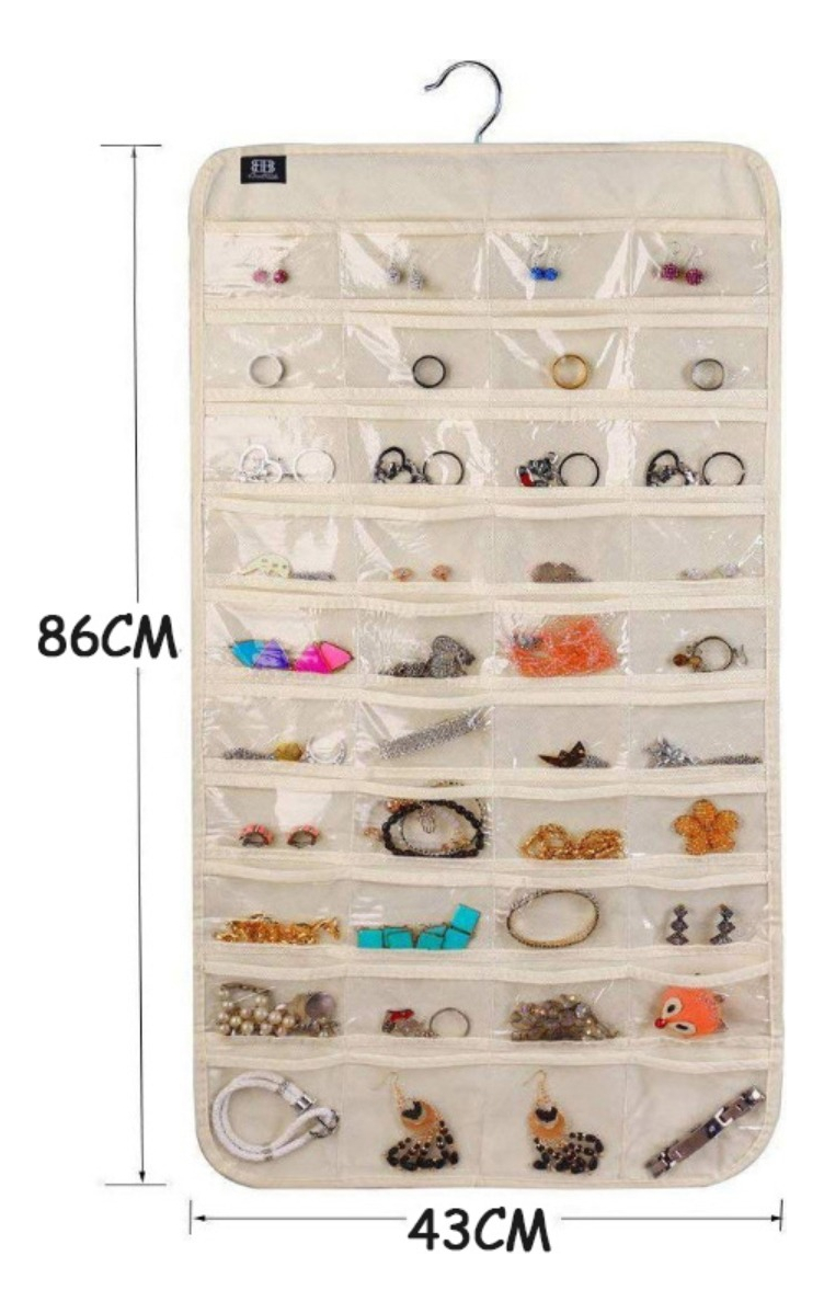 Ideal para mantener a salvo todas tus joyas y bijou, al ser formato percha puede colgarse detrás de una puerta o bien colocar en un armario, lo que libera totalmente el espacio de muebles y cajones.