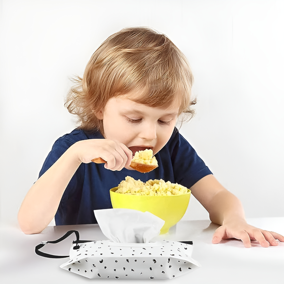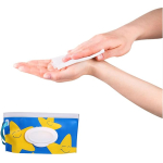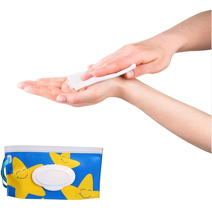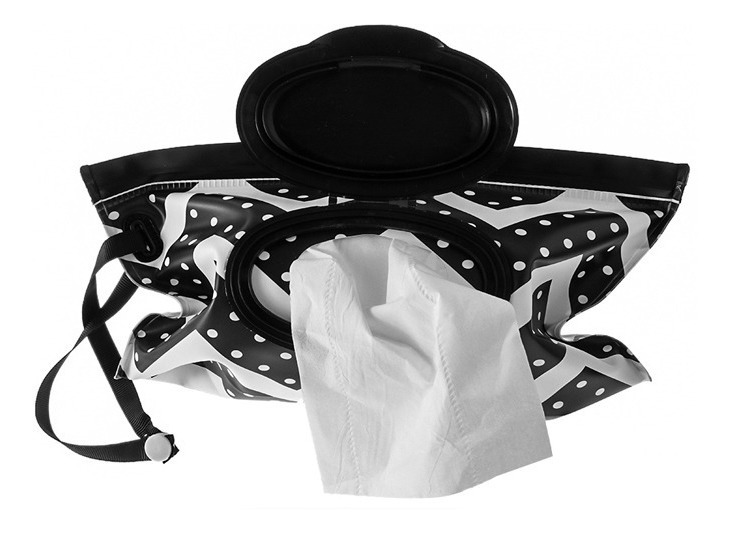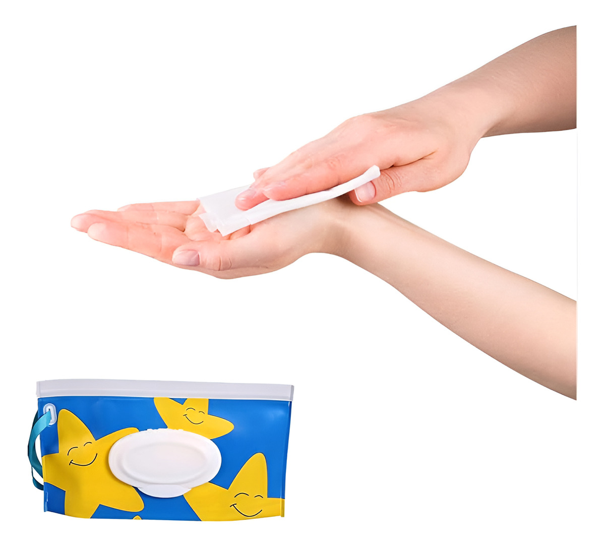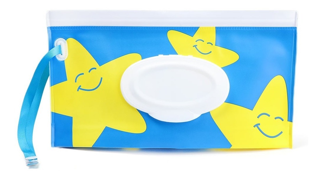 Fácil de limpiar después de un viaje, tiene una correa a presión para poder colocarlo fácilemente en carritos de la compra, asas de coche para bebés, etc. Se adapta a la mayoría de los tipos de toallitas. Hay un cierre ziplock en la parte superior y el labio de plástico para tirar de sus toallitas. Es muy fácil rellenar con nuevas toallitas más tarde. Gracias a su estilo delgado no ocupa mucho espacio en la bolsa para pañales, pero también contiene suficientes toallitas húmedas para el día a día.