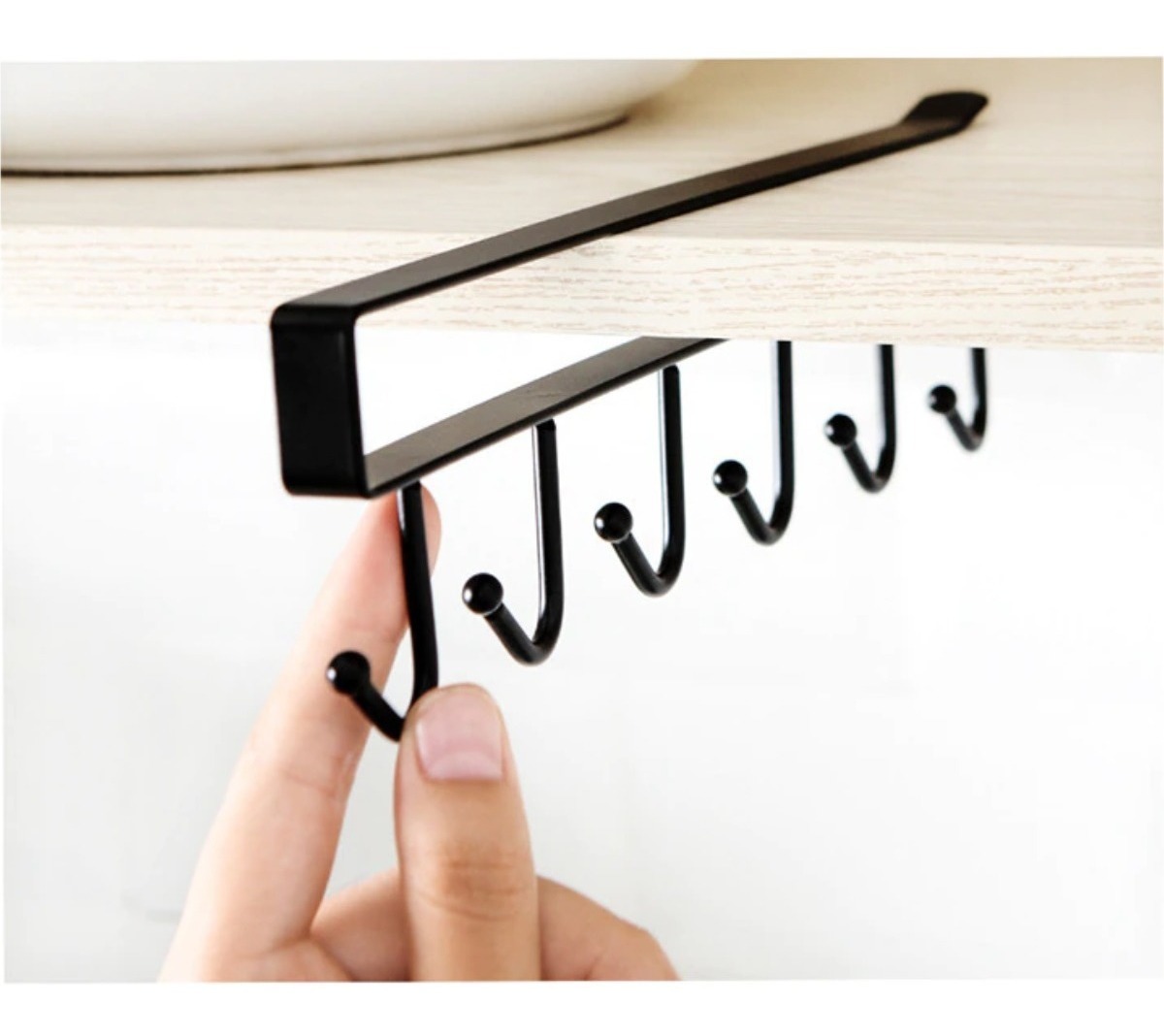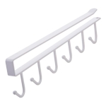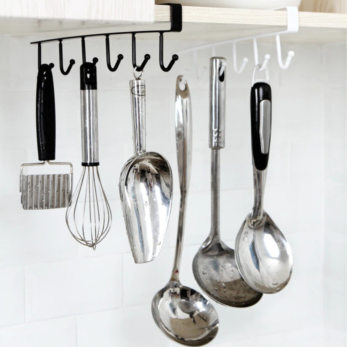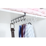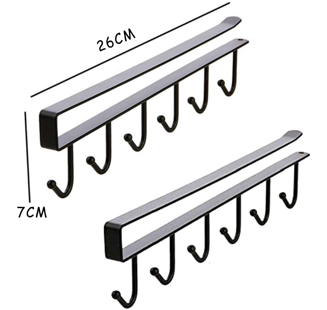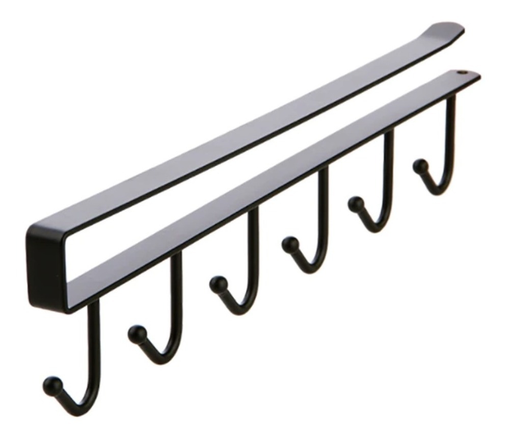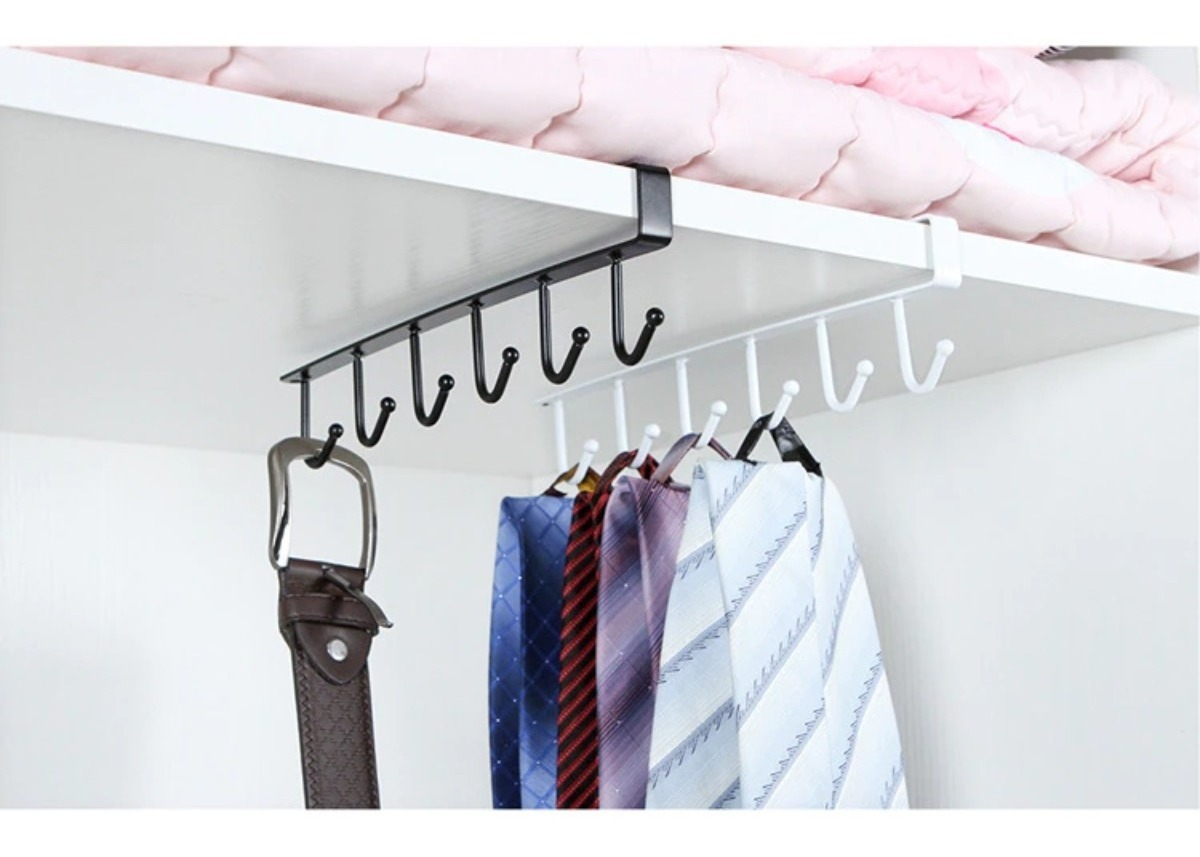 Organizador colgante de hierro con 6 ganchos, práctico y multifuncional. Ideal para utilizar en armarios para corbatas, pañuelos y cinturones, o en la cocina para paños, tazas, utensilios, y más. Diseño compacto y resistente que optimiza el espacio.