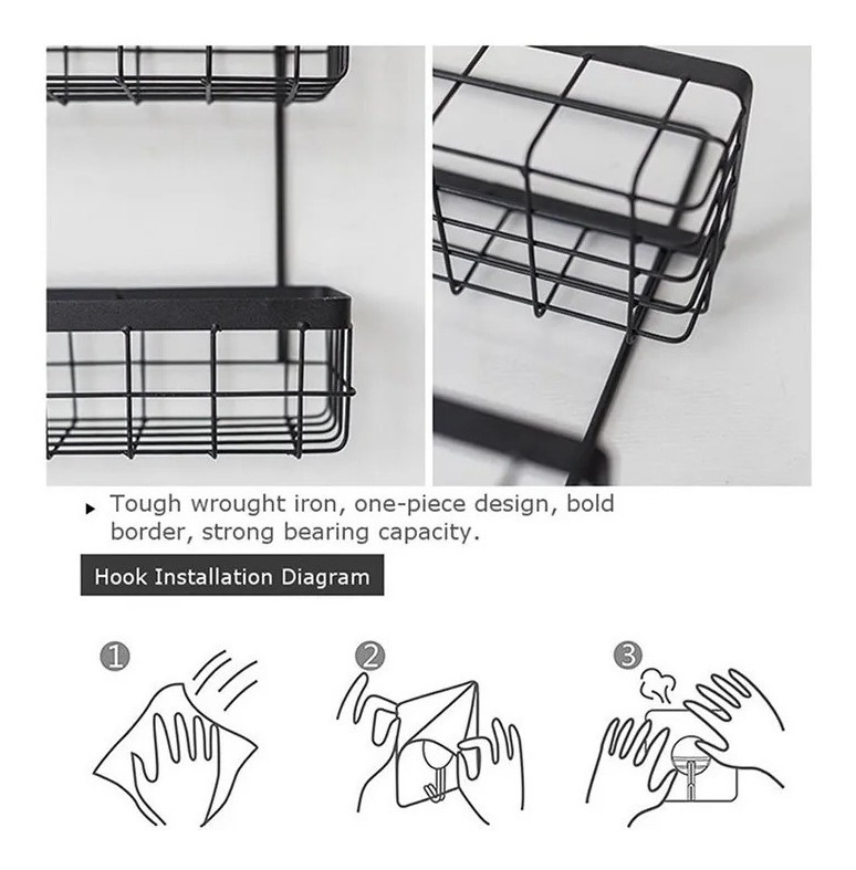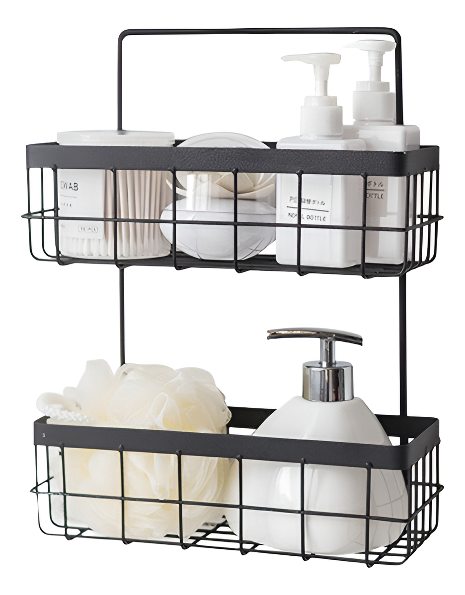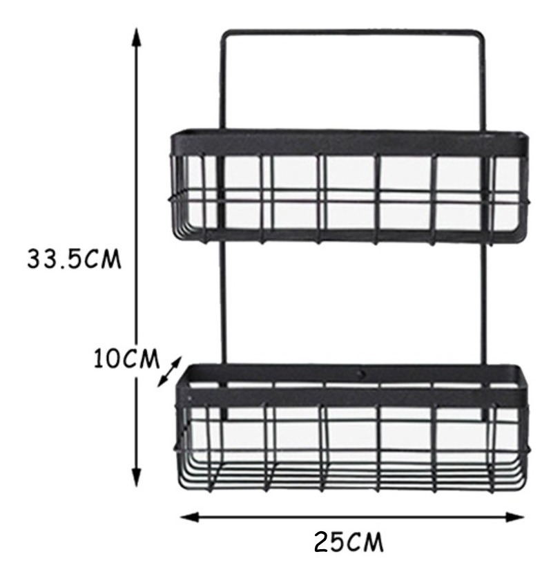 Práctico estante colgante ideal para organizar tus productos en el baño o la cocina. Perfecto para almacenar artículos de higiene, limpieza, especias o utensilios, optimizando el espacio de manera funcional y ordenada. No incluye ventosas ni accesorios de instalación.