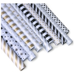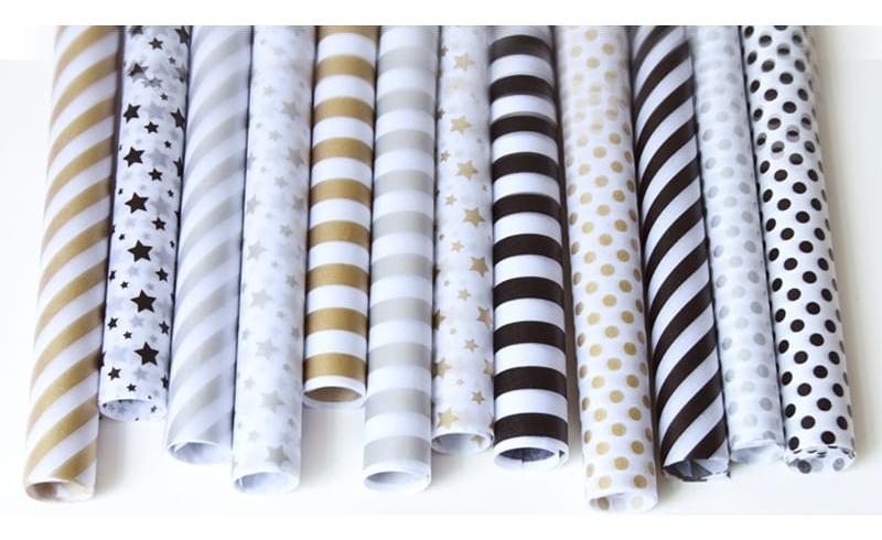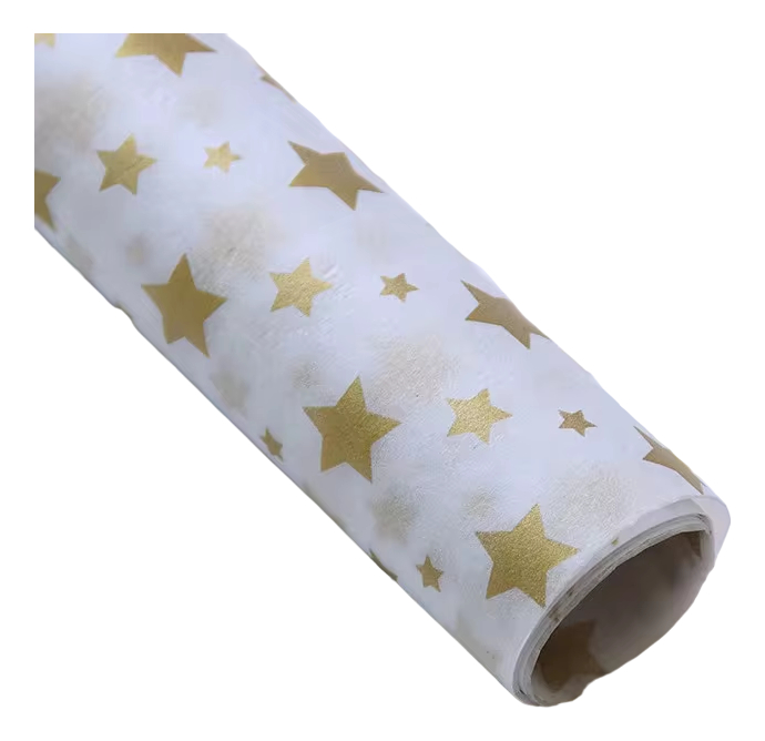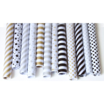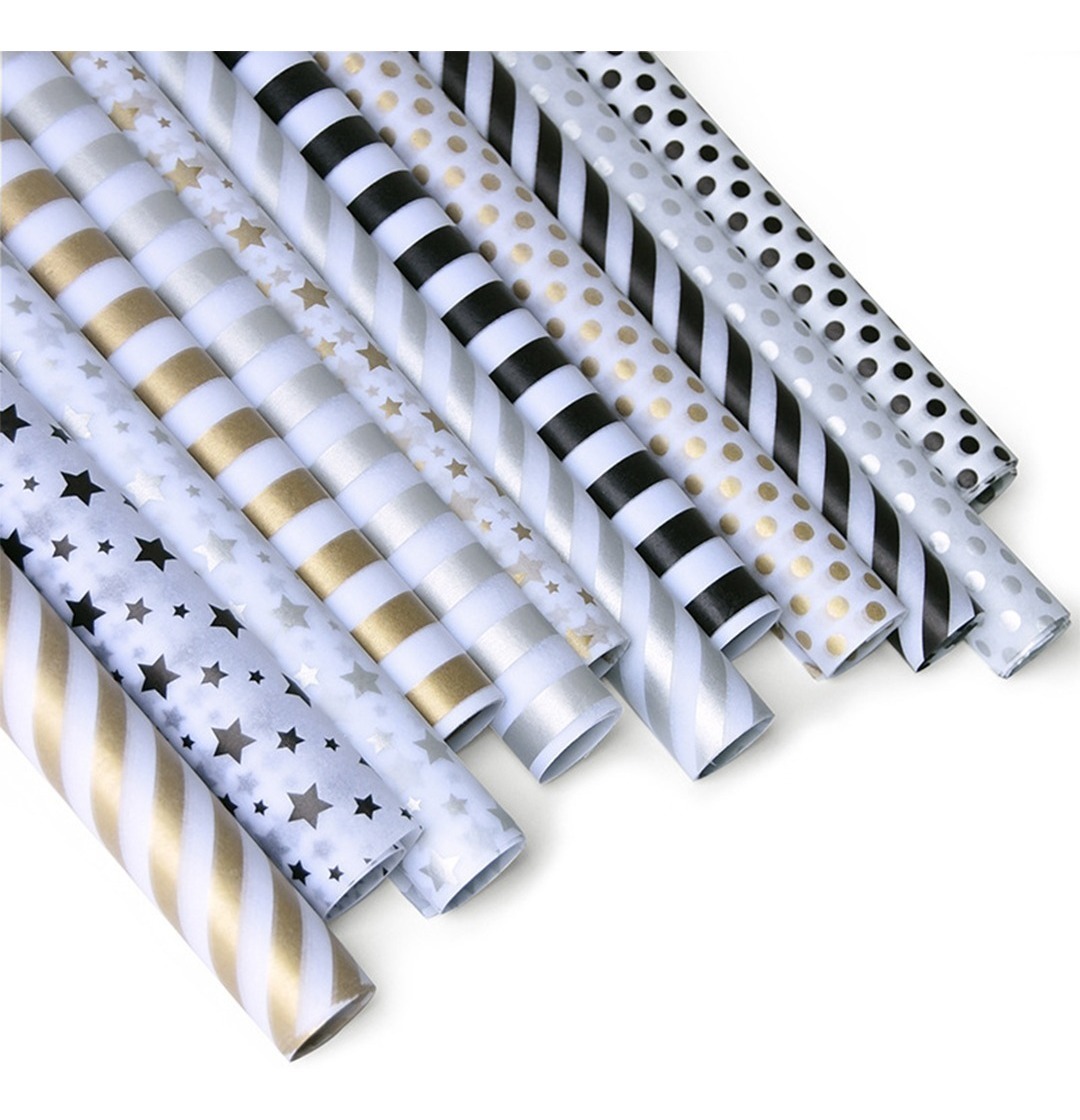 Papel de regalo su medida es de 74 cm de ancho x 50 cm de largo, ideal para envolturas, manualidades, decoración, arreglos florales y cotillón. Tonos delicados de textura suave y fina que se adaptan a cualquier ambiente con sus originales diseños de estrellas, rayas y lunares.