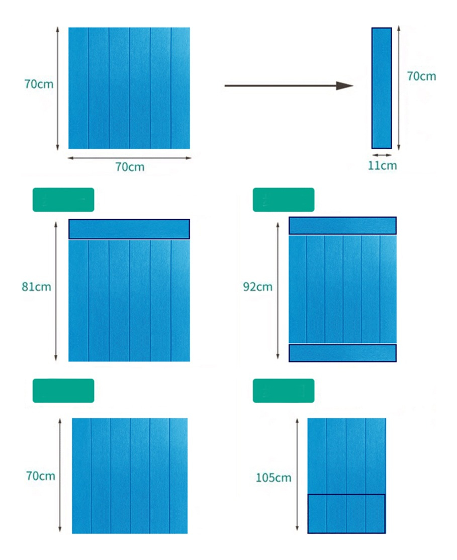 – Medidas: 70 cm (largo) x 77 (alto) cm x 0,80 (espesor) cm.. – Resistentes al agua. – Fácil de limpiar.