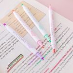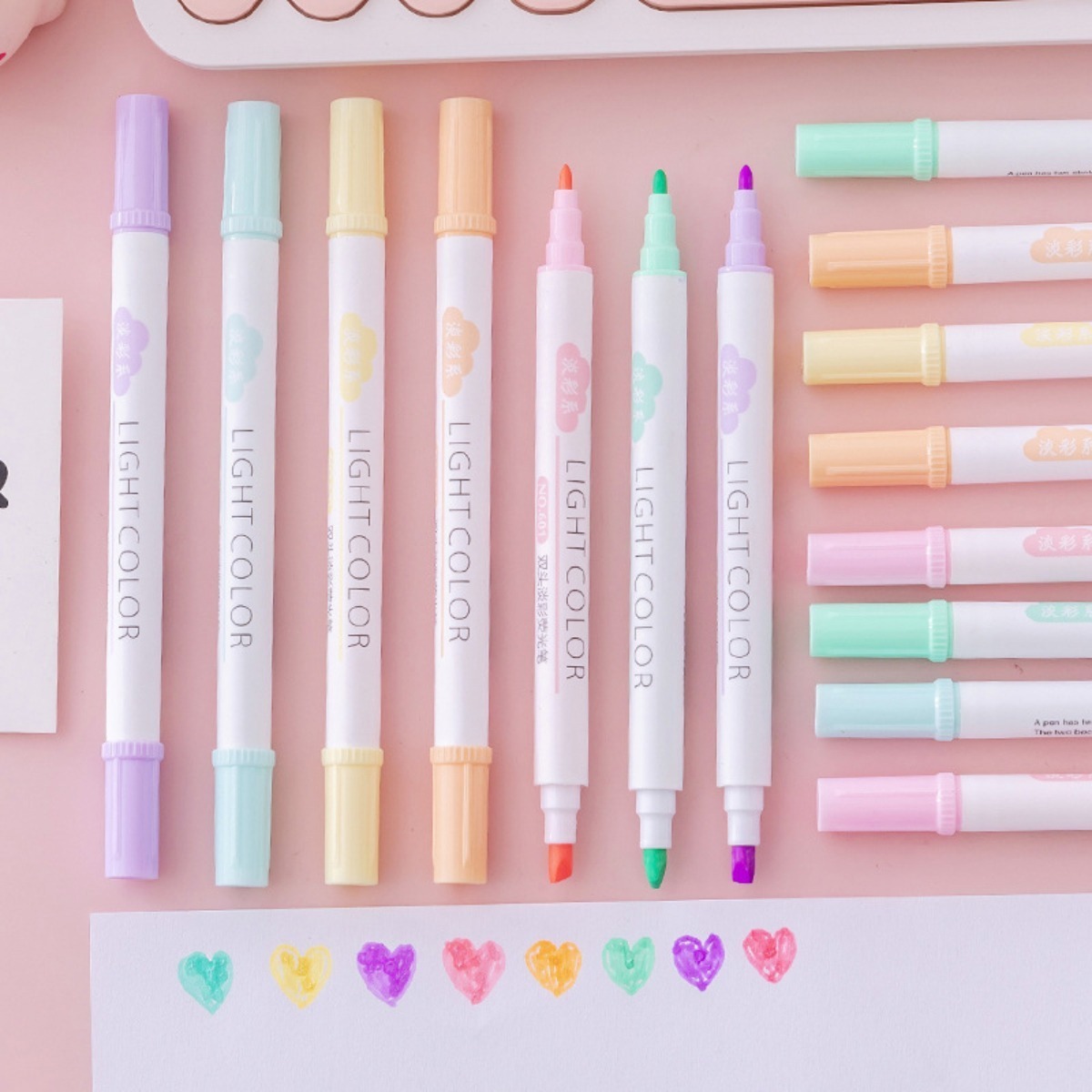 Perfectos para tener en la mochila o en la cartuchera, set de seis marcadores resaltadores de doble punta, de un lado punta fina de ancho normal, y del otro lado punta chata tìpica de los resaltadores. Genial para resaltar textos de estudios, libros, dibujar, etc.