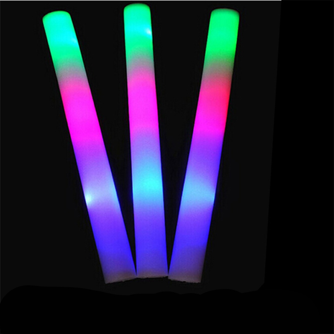 Tamaño: 48cm x 4 cm Color: 3 luces led parpadeantes (rojo azul verde) Baterías: 3 x AG13 (no inluídas) Material: Espuma Peso: alrededor de 20 g/unidad Posee modo de ahorro de energía Aplicación: fiesta de cumpleaños, concierto, navidad