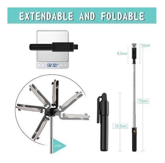 – Estructura de acero inoxidable ABS + es resistente a la corrosión y no se oxida. – Más estable, más ligero y duradero. – Se puede usar como un selfie stick normal o como un trípode móvil rápido. – Perfecta compatibilidad con la mayoría de los teléfonos inteligentes del mercado. – Cabezal de rotación de 270°, puede girar el modo de cámara vertical para obtener el mejor ángulo de disparo, puede tomar fotos, hacer videollamadas o transmitir en vivo. – El tamaño mini plegable, liviano, no ocupa demasiado espacio, le brinda más espacio cuando viaja, es la mejor opción para grabar buenos recuerdos. – El selfie stick 3 en 1 tiene un control remoto Bluetooth incorporado, que le permite tomar selfies. Separe los controles y tome fotos grupales en fiestas y graduaciones, bodas y viajes. Compatible con Android y IOS. El control no incluye pilas.