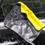 Paño de microfibra gruesa, ideal para limpiar y secar vehículos sin dejar rayaduras. Fabricado con una mezcla de poliéster y nailon, garantiza máxima suavidad y absorción. Perfecto para mantener tu auto limpio y brillante.