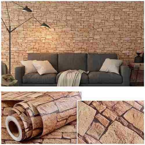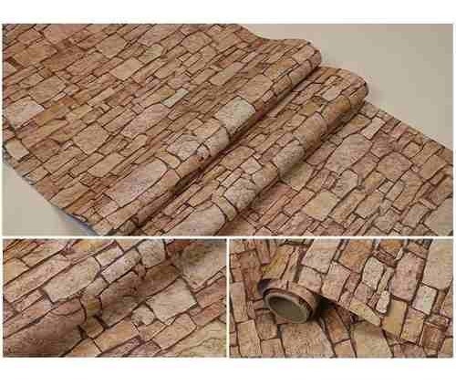 Papel Adhesivo Beige Empapelar Paredes Simil Piedra 122 Cm