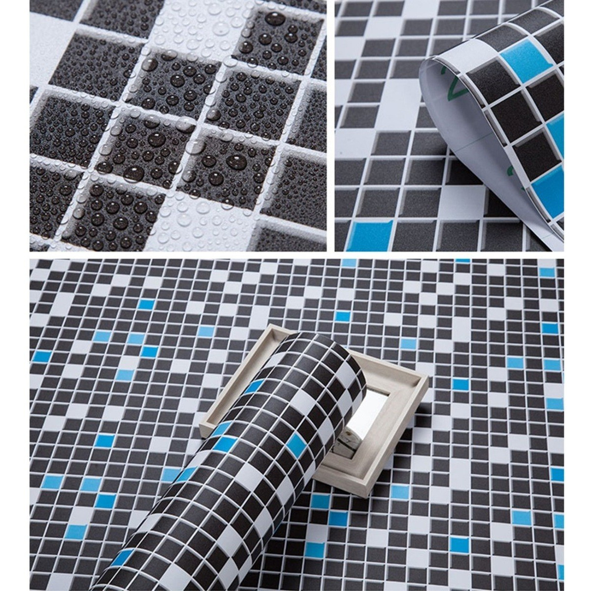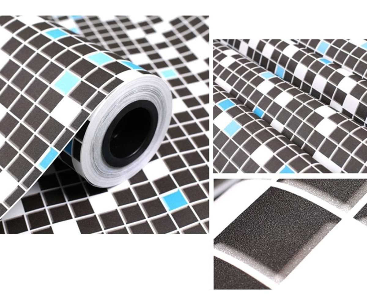 Papel Adhesivo Empapelar Paredes Azulejos Cuadriculado Negro