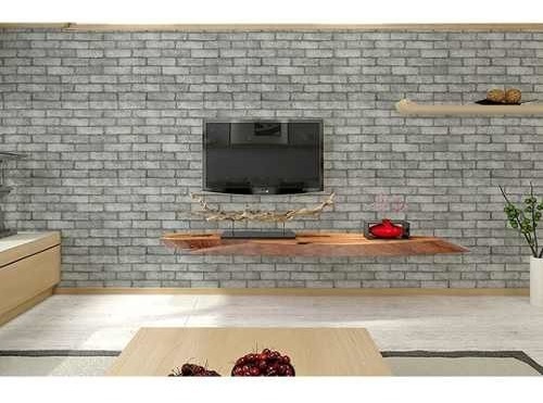 Papel Adhesivo Gris Empapelar Paredes Simil Ladrillo 122cm