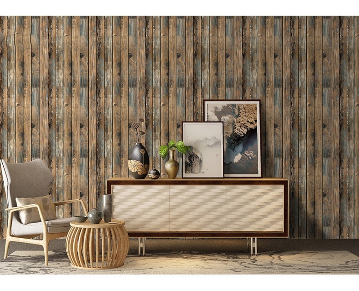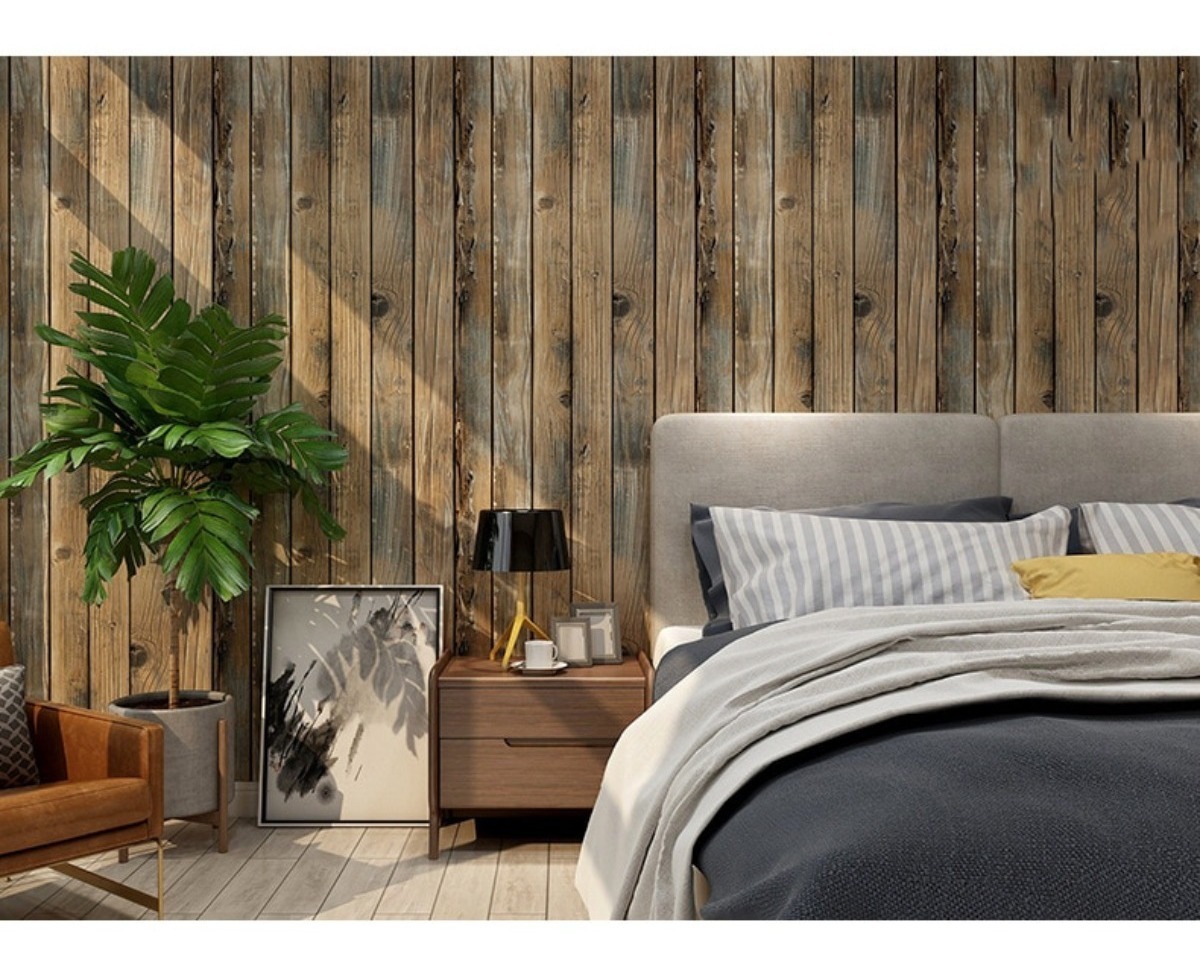 Papel Adhesivo Tapiz Pared Liston Madera Rustico Rollo 10 Mt