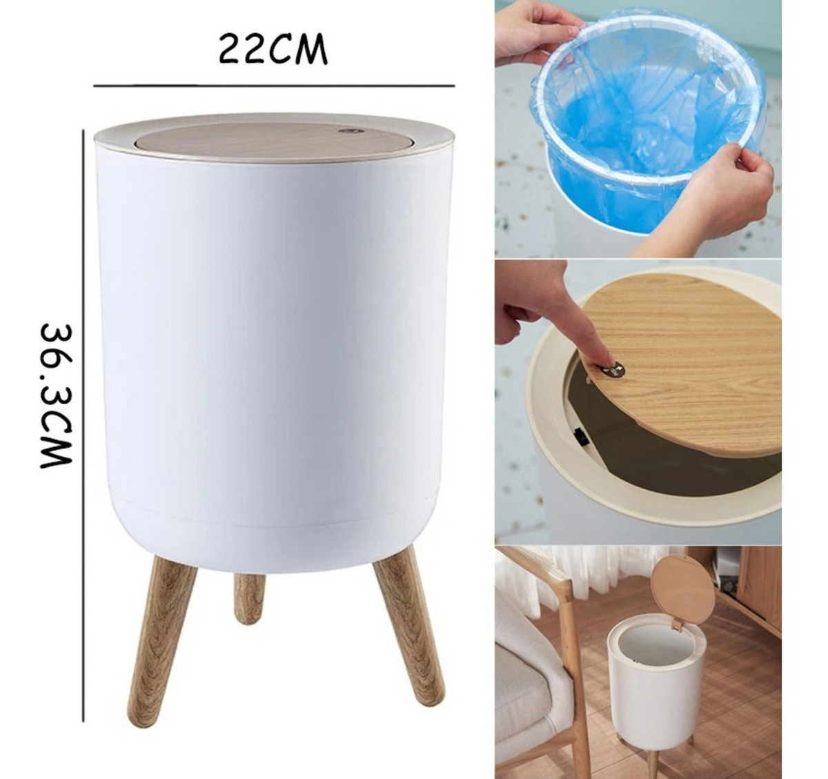 Papelera Cesto Basura Patas De Madera Decorativo Cocina Baño