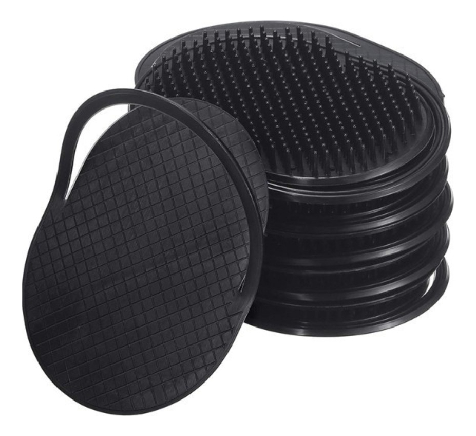 Este cepillo es ideal para peinar a tus mascotas ayudándoles en los cambios de pelajes, y demás. Está fabricado en plástico y cuenta con una suerte de que permite que introduzcas cuatro dedos y lo utilices como si fuera tu misma mano.