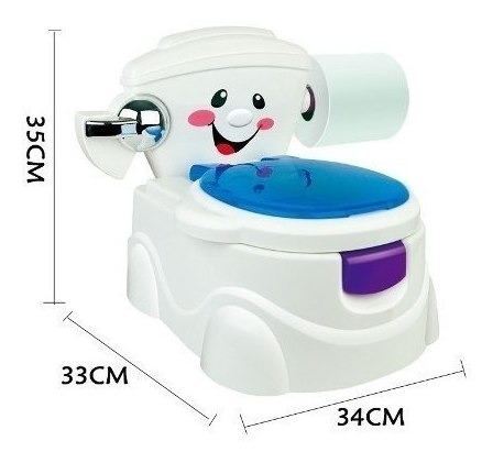 – La pelela incluye frases y canciones. – Tiene 2 etapas del uso: utilización de forma completa en el piso para el niño/a principiante, el asiento y la tapa se desprenden para acoplar al asiento del inodoro adulto para ayudar a la transición. – Se incluye un protector anti derrame para niños. – Asiento completamente funcional, con tapa. – La pelela contiene un espacio para agregar papel higiénico.