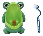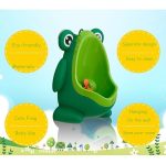 100% nuevo y de alta calidad Material ecológico, no tóxico y sin olor peculiar. La forma de rana y el molino de viento giratorio mejoran el interés de tus bebés. La Ventosa fuerte puede ajustar la altura del artículo según el bebé. Gran capacidad que garantiza que la orina no se desborde. El diseño de separación de ranura de orina y la superficie ligera hacen que el artículo sea fácil de limpiar. Un maravilloso regalo para su bebé y sus amigos.