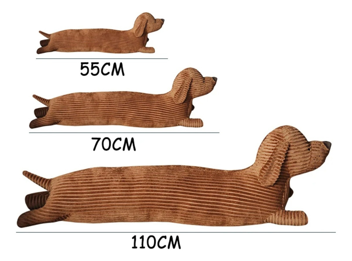 Este adorable peluche de perro salchicha de 110 cm es perfecto tanto como almohada infantil como elemento decorativo. Hecho de material suave y de alta calidad, brinda comodidad y diversión a los más pequeños, mientras decora su espacio de forma divertida y acogedora. Ideal para abrazar y jugar, o para añadir un toque tierno a la habitación.
