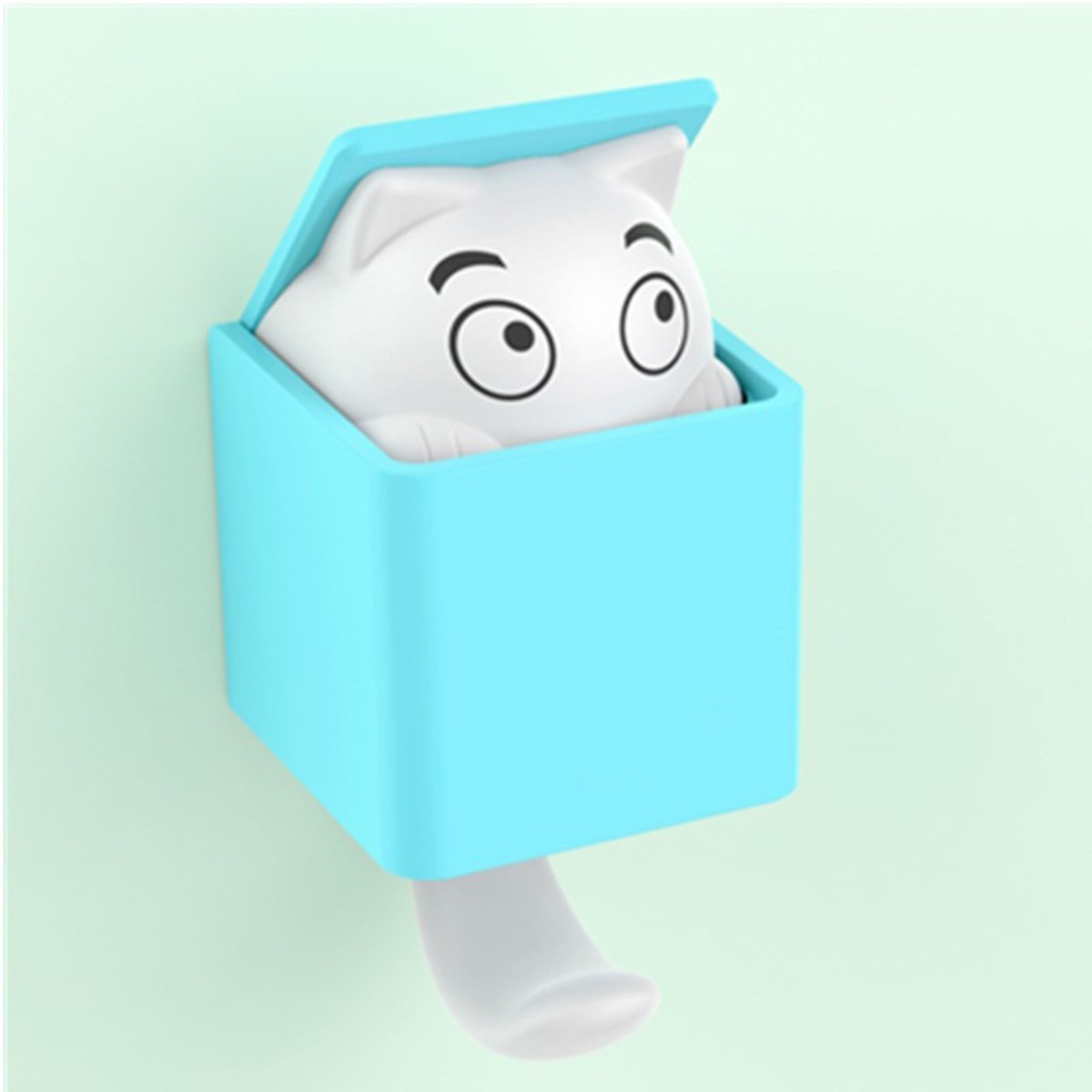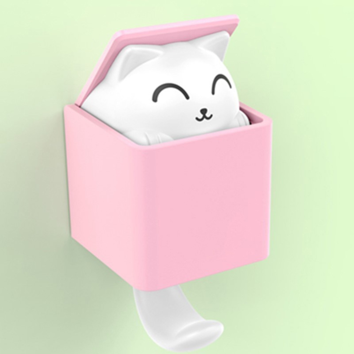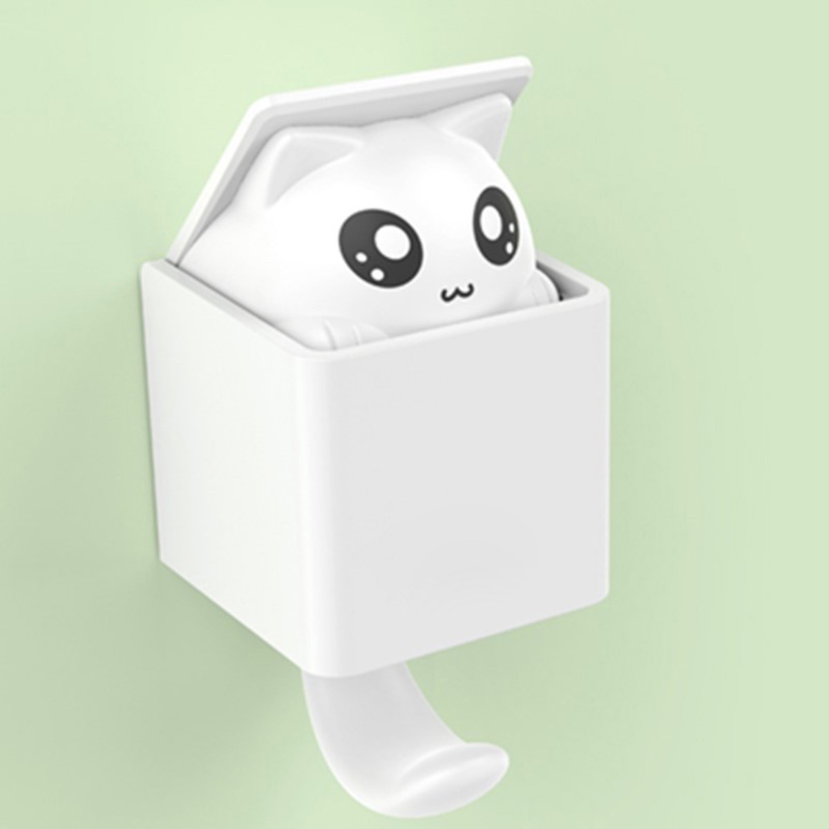 Divertidos ganchos portallaves o accesorios con forma de cubo que al colocar algo en su cola (gancho) levantan la tapa y se ve el gato.