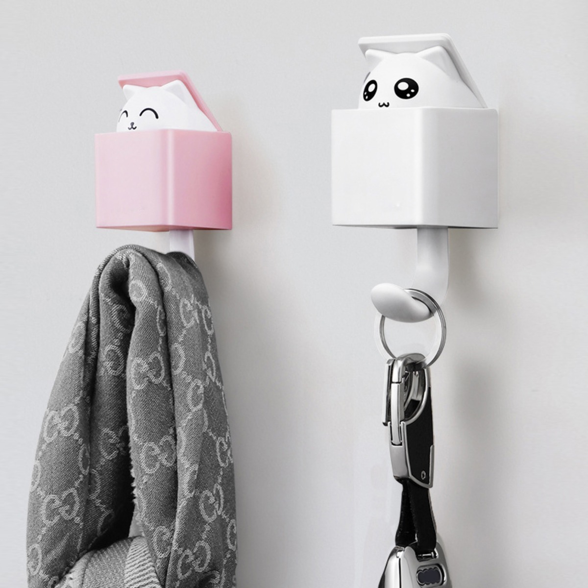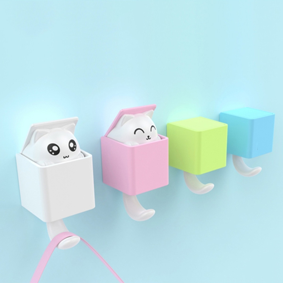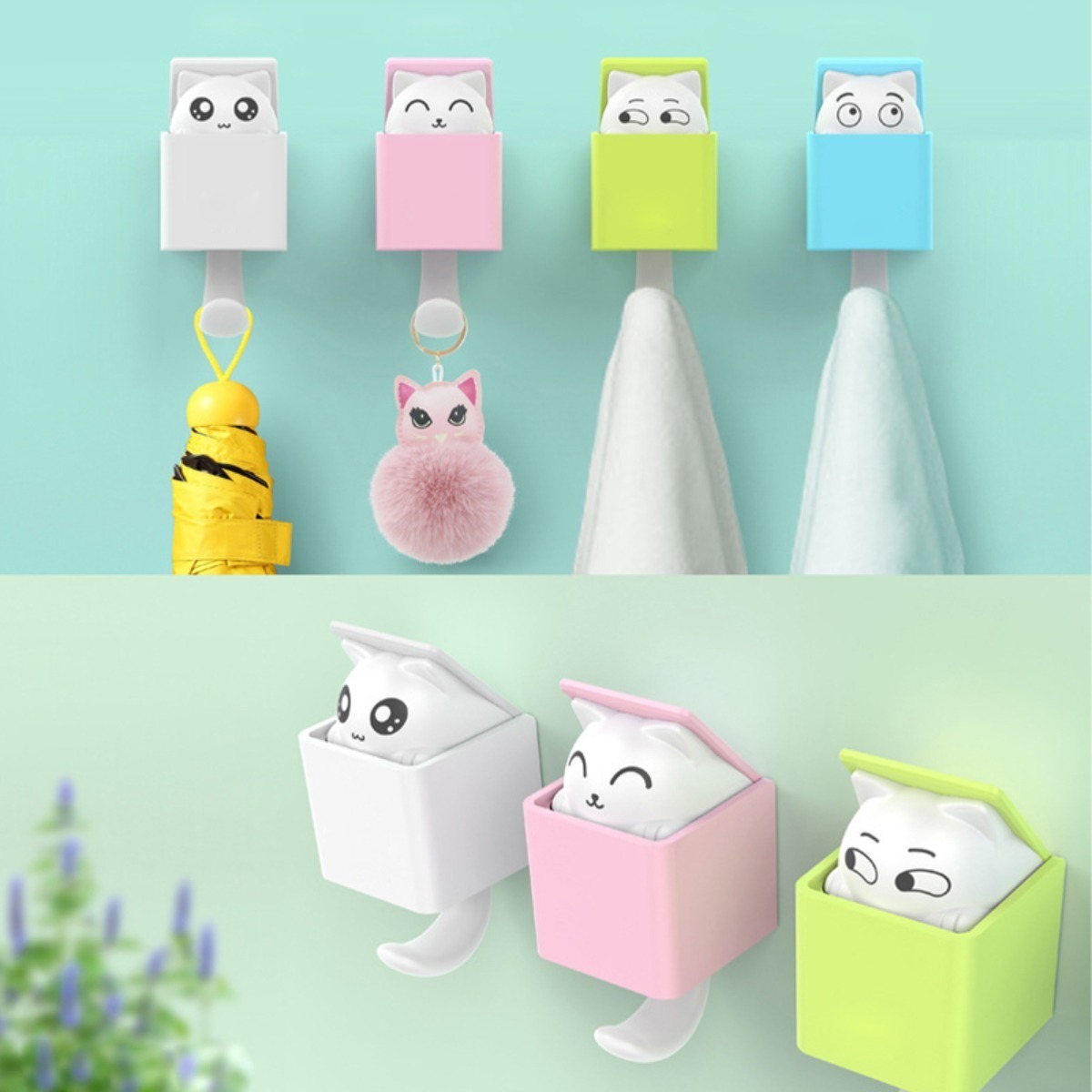 Divertidos ganchos portallaves o accesorios con forma de cubo que al colocar algo en su cola (gancho) levantan la tapa y se ve el gato.