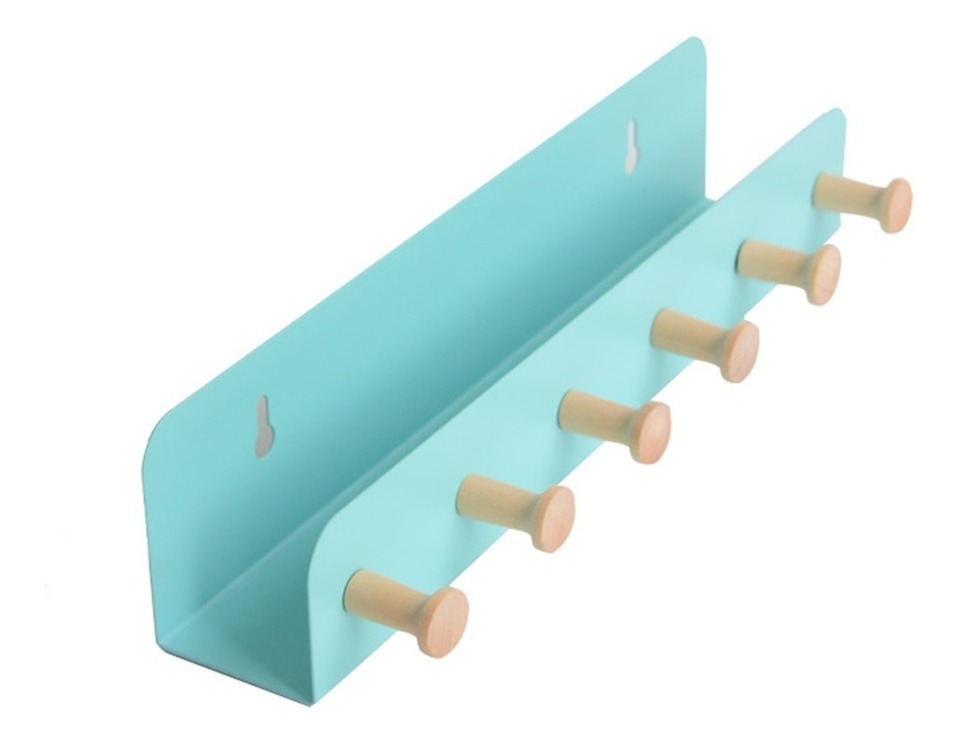Perchero infantil para colgar, en madera y metal con colores apastelados. Perfecto para colgar cambios de ropa, abrigos, toallas etc.