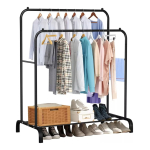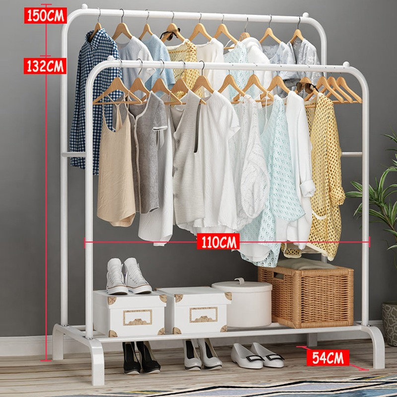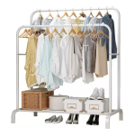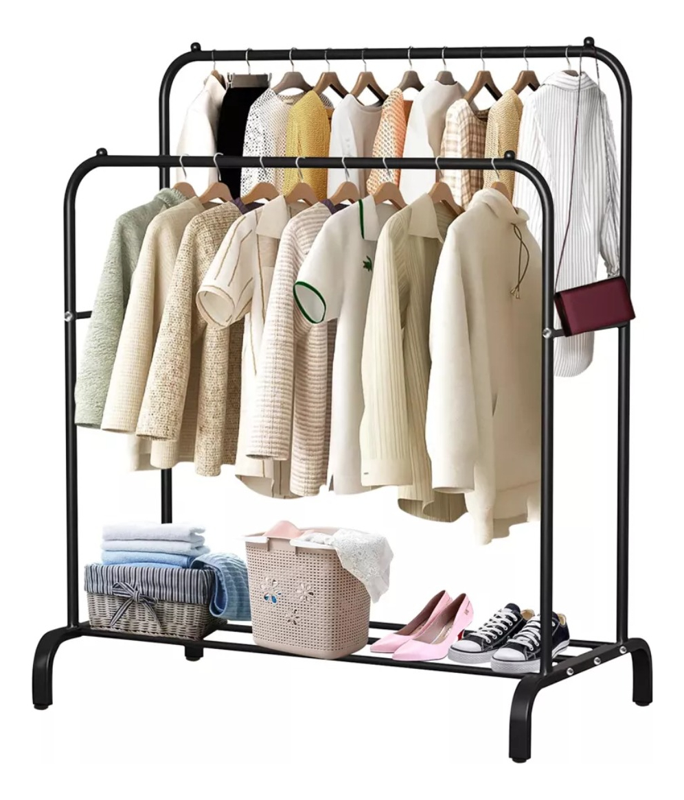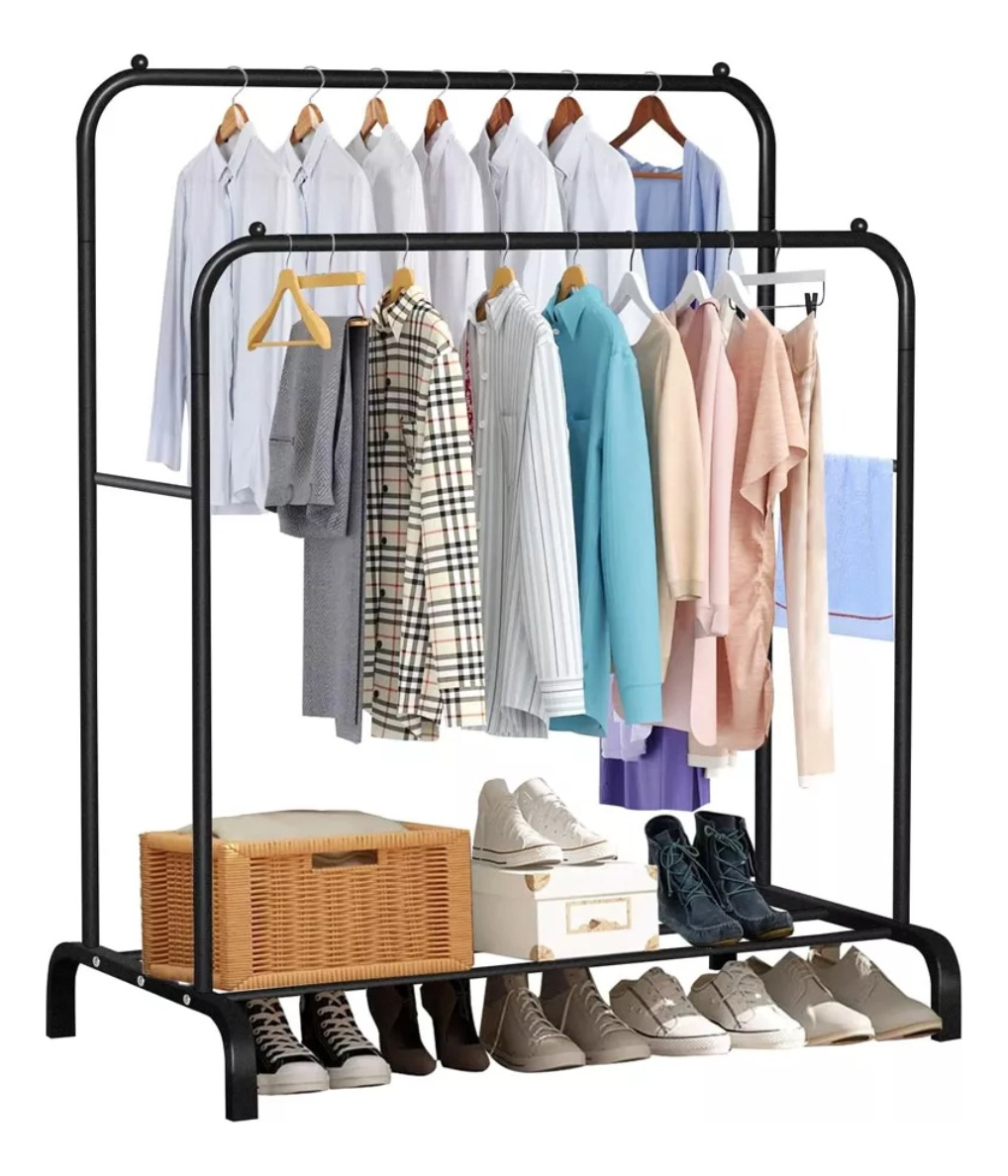 Perchero Pie Metálico Organizador C/colgador Doble Y Estante
