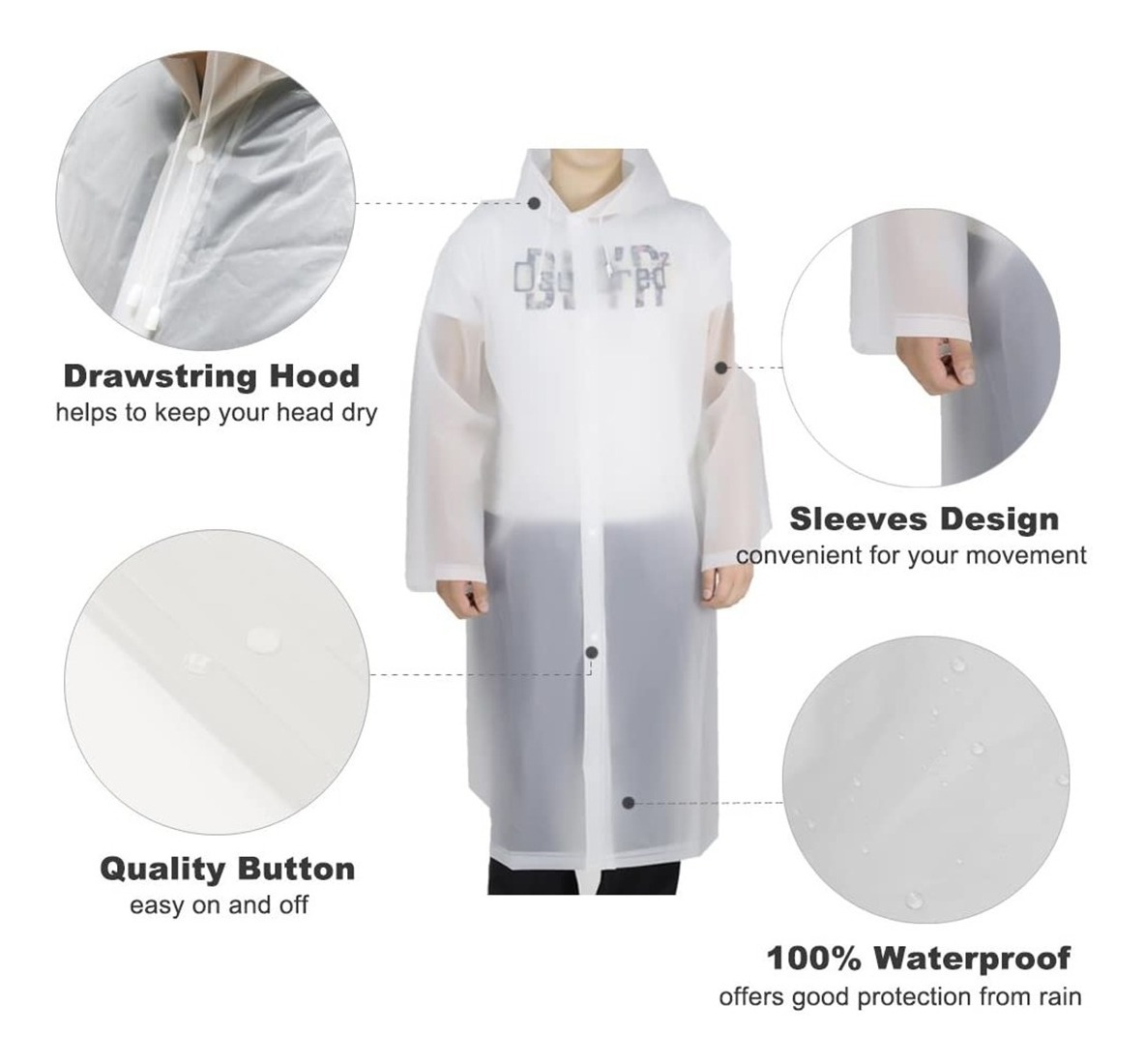 Este práctico pilot poncho es ideal para protegerte de la lluvia en cualquier momento. Diseñado con material impermeable, cuenta con mangas elásticas para un ajuste cómodo y una capucha integrada que asegura una cobertura total. Su diseño ligero y compacto lo hace perfecto para llevar en tu cartera o mochila, siendo la solución ideal para emergencias en días lluviosos.