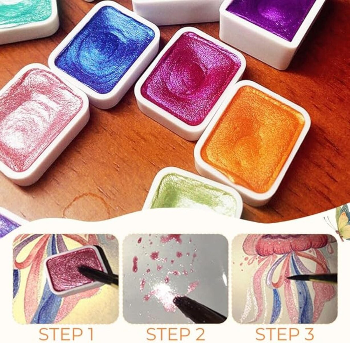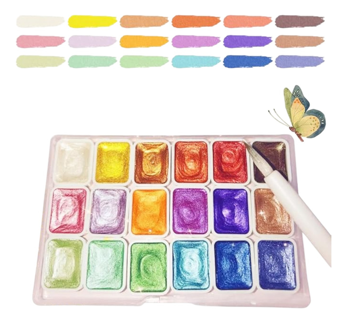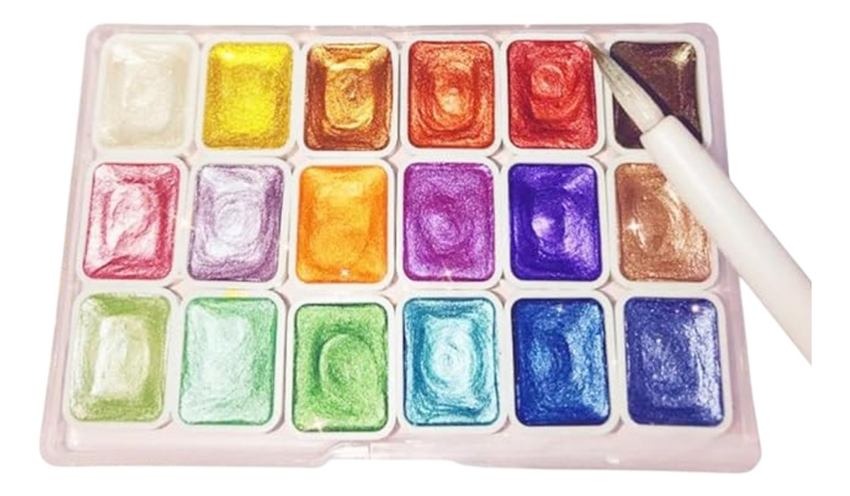 Pinturas Acuarelas Solidas Metalicas 18 Colores + Pincel