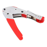 Pinza para cables coaxiales RG6 y RG59 a presión. Esta pinza está indicada para cables coaxiales de TVCable, satélite, sistemas de seguridad de CCTV etc. Gracias a su tamaño pequeño entra facilmente en la mano lo cual le permite un uso más rapido y con menor esfuerzo. Está fabricada en metal, con mangos recubiertos en goma para brindar un mejor agarre, trae arandela para mantenerla cerrada y disminuir su tamaño mientras no es utilizada.