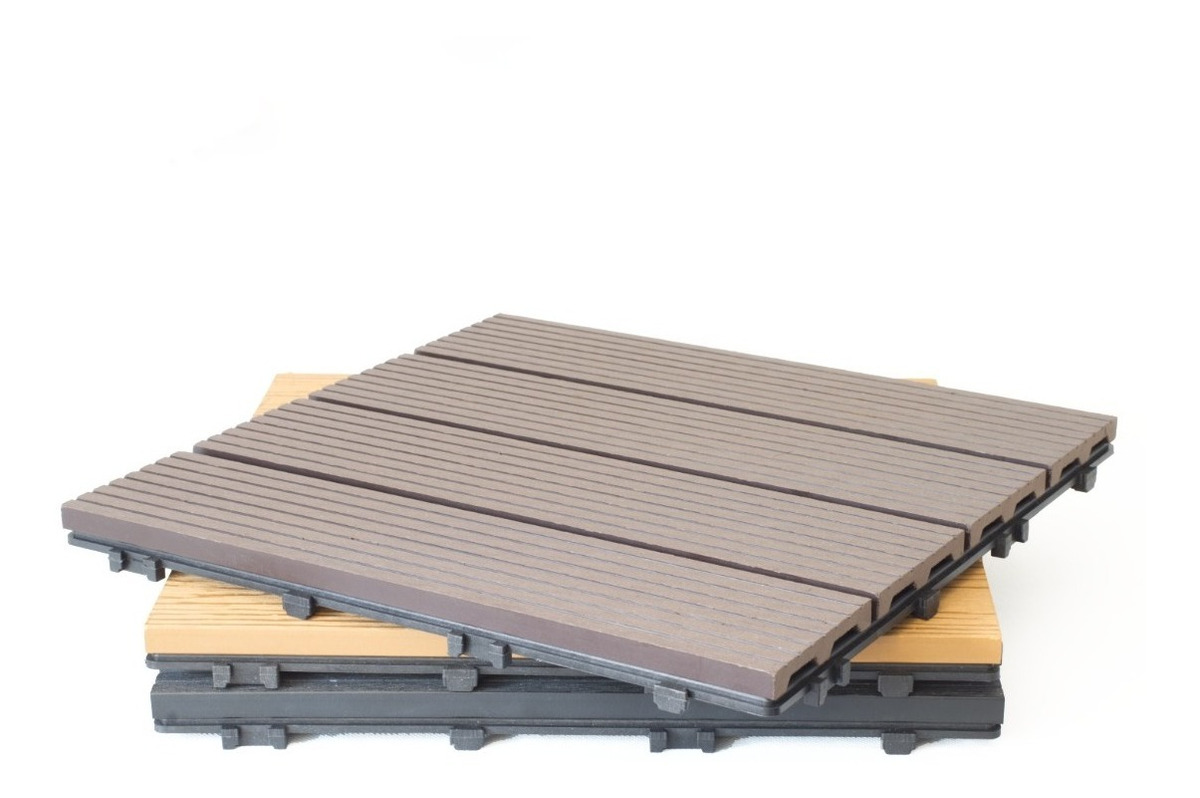 Práctico piso impermeable pensado para exteriores, encastrable, de alta calidad y detalles cuidados. La medida de cada baldosa es de 30*30 con una altura aproxmiada de 2,8cm.