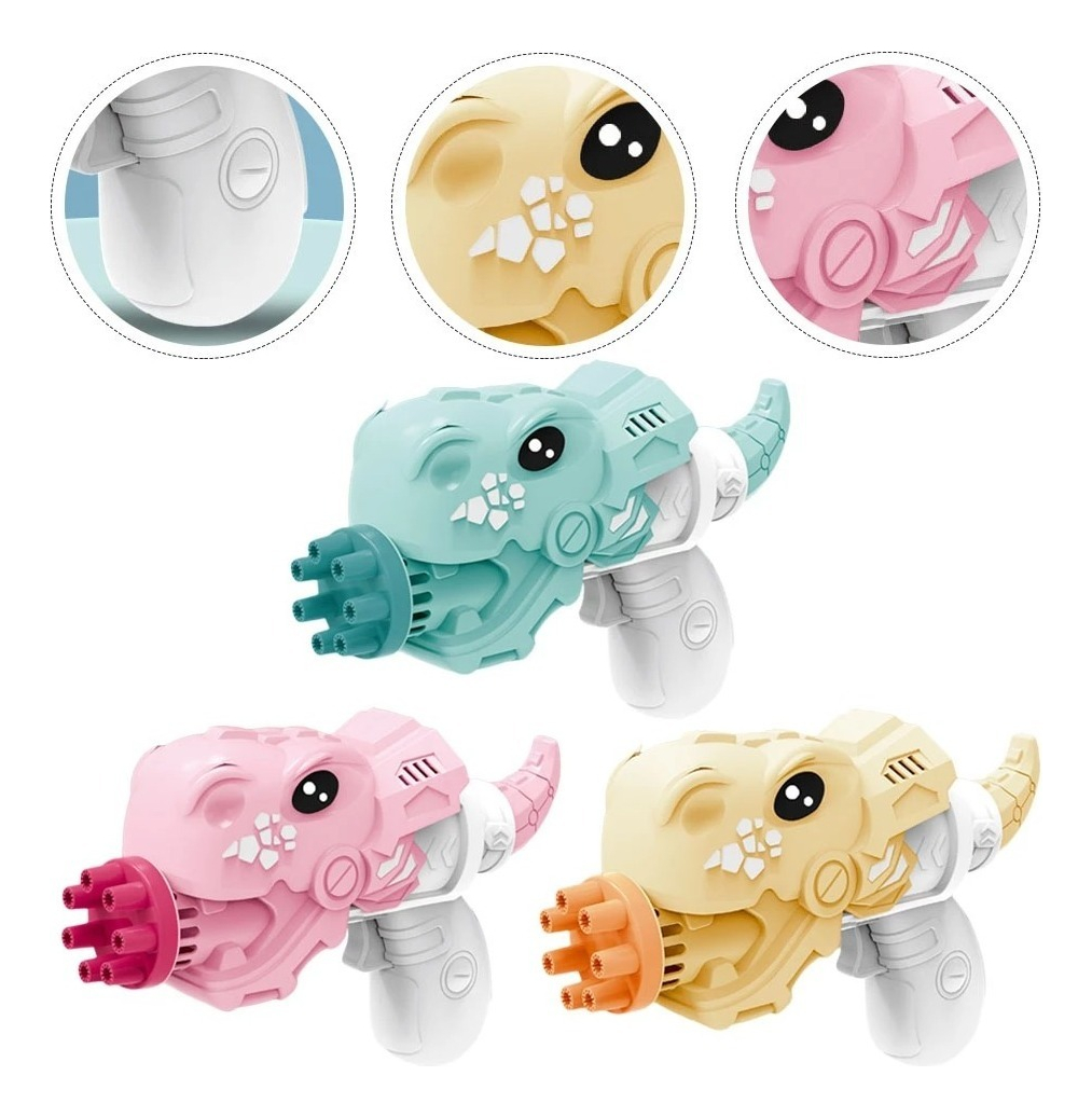 La pistola de burbujas con diseño de dinosaurio para niños y niñas es un juguete divertido que suele funcionar con pilas. Incluye líquido para burbujas y viene con una zona de recarga para rellenar el depósito de burbujas. Es ideal para jugar en el exterior y puede hacer que las burbujas salgan de manera continua mientras se aprieta el gatillo. Además del diseño atractivo de dinosaurio, que atrae a los niños, su funcionamiento simple y su capacidad de producir muchas burbujas la convierten en una opción popular para fiestas y juegos al aire libre.