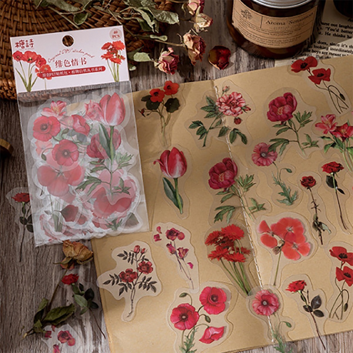 Plancha de stickers con diseños de naturaleza, incluye 40 unidades. ¡Perfectos para personalizar regalos, diarios, o cualquier objeto que desees decorar con un toque único y natural!