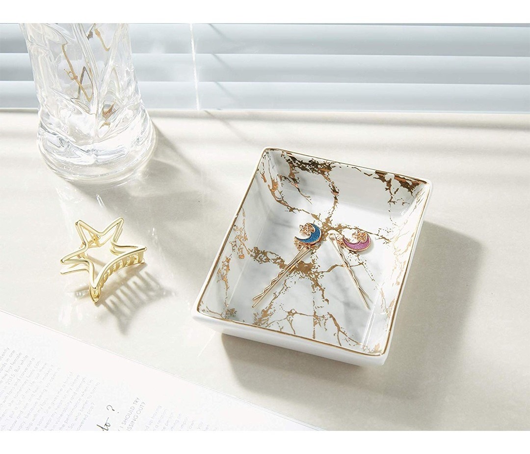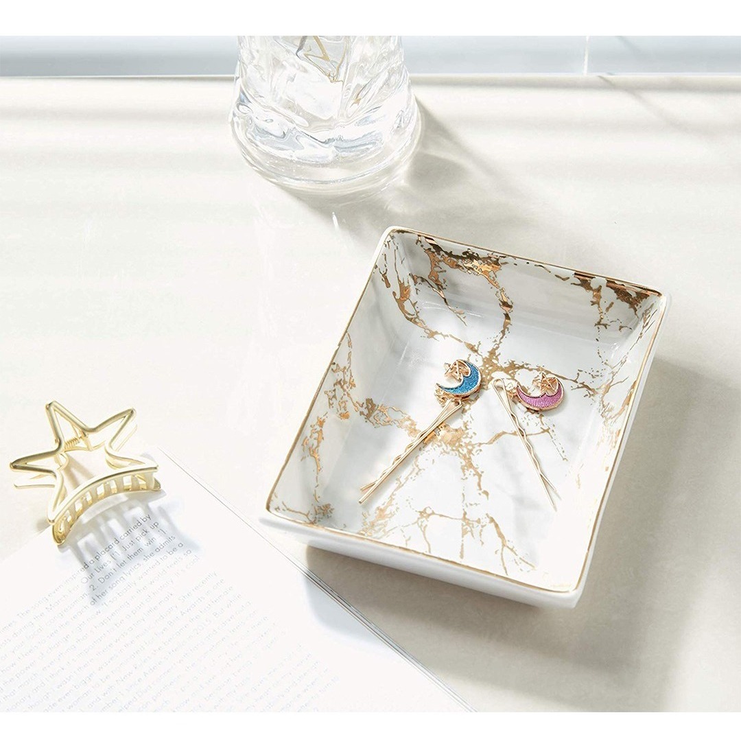 – Excelente Calidad: Esta placa de mármol nórdico con rayas doradas está hecha de cerámica de alta calidad. Está hecha a mano por un artesano experto. – La Medición es de 10*13.5cm. – Elegante y funcional:Es un adorno bonito para el compromiso y la boda. – Regalo Perfecto: la placa de pulseras con soporte para anillo es un regalo perfecto para parejas, amantes, madres, amigos, padres o cualquier persona especial que se te ocurra. Un gran regalo para los días de bodas, Navidad, días de la madre. – Embalaje Profesional y Reforzado: Esta placa de brazalete de cerámica con placa de mármol con rayas doradas y placa de brazaletes con anillo de plástico está empaquetada con espuma de polietileno para garantizar que los soportes de cerámica vengan en buenas condiciones.