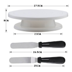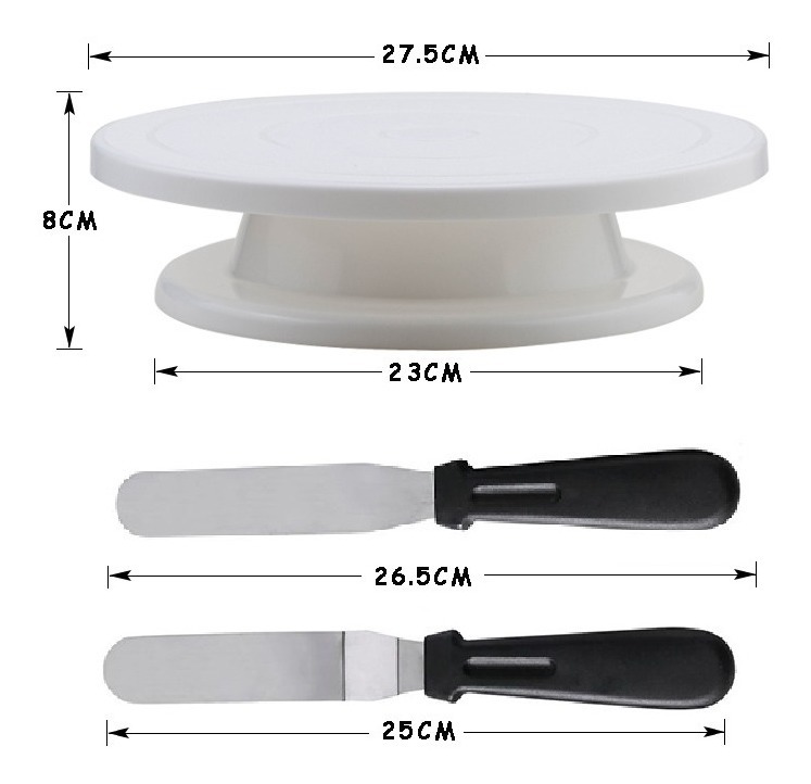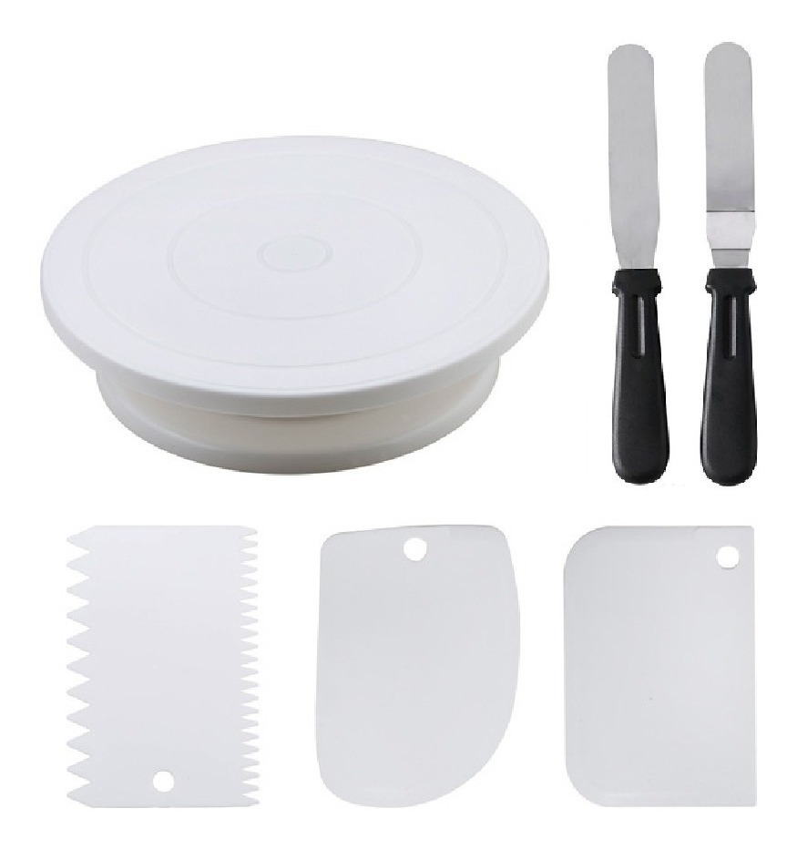 Plato Giratorio Base para Tortas, ideal para decoración de fiestas y repostería. Este set incluye herramientas esenciales para crear diseños y decoraciones en tortas de manera fácil y profesional. Fabricado en plástico de alta calidad, es duradero y práctico para usar en casa o en reposterías. Viene presentado en caja, listo para regalar o para tu propio uso. Perfecto para amantes de la repostería y la decoración de pasteles.