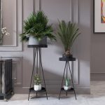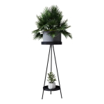 Este elegante porta macetas de hierro, con diseño de pie alto, es perfecto para realzar tus plantas y decorar cualquier espacio interior o exterior. Su estructura resistente brinda estabilidad, mientras que su estilo minimalista añade un toque decorativo moderno. Cuenta con dos estantes uno superior más grande y otro inferior, ideales para colocar macetas o decoración.