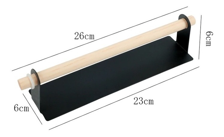 Este porta rollo para papel de cocina es práctico y funcional, ideal para mantener el orden y aprovechar el espacio en tu hogar. Está fabricado en hierro con pintura en aerosol resistente al óxido, lo que garantiza durabilidad, y cuenta con una varilla colgante de madera desmontable que facilita su instalación y uso.