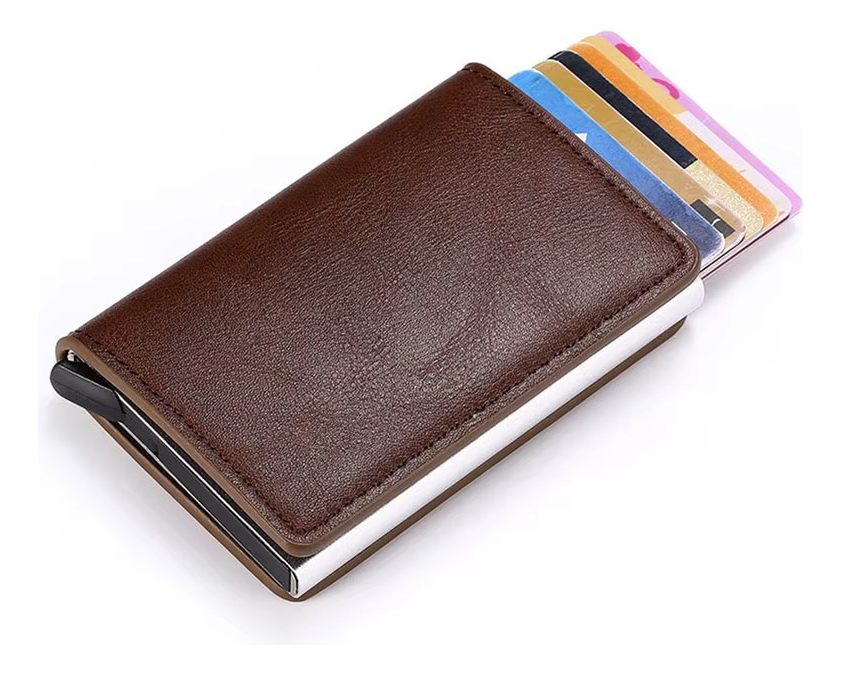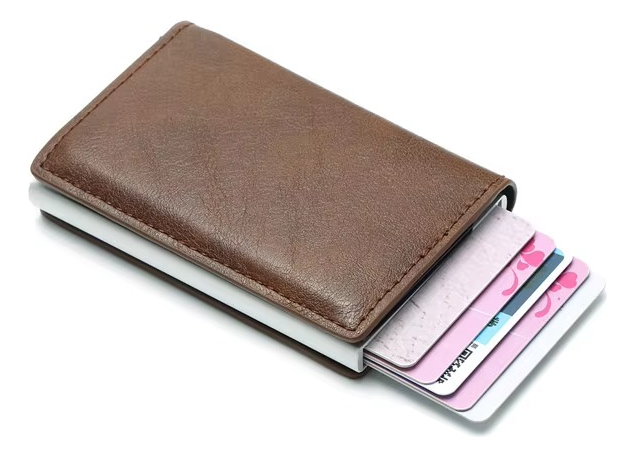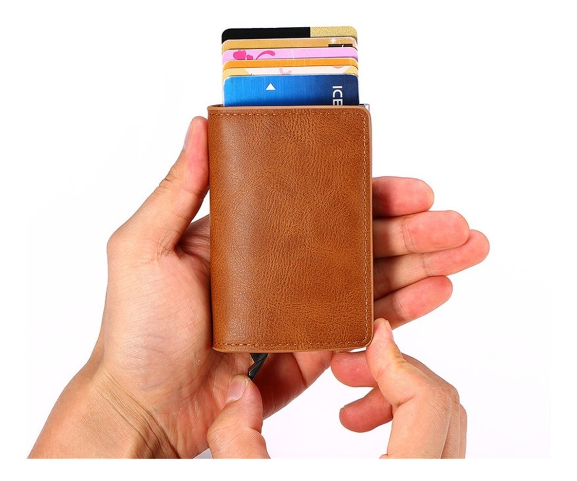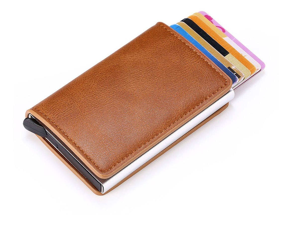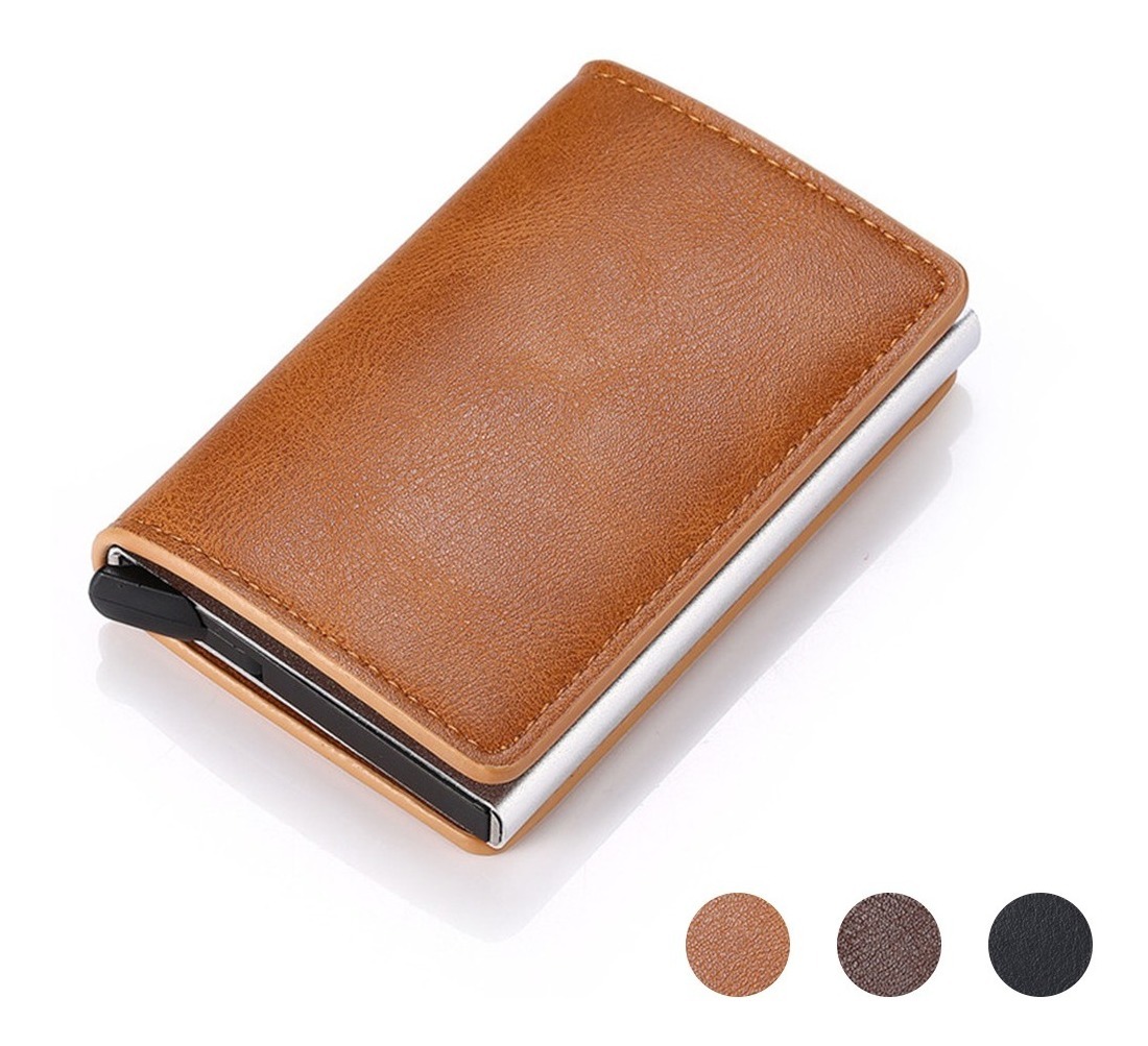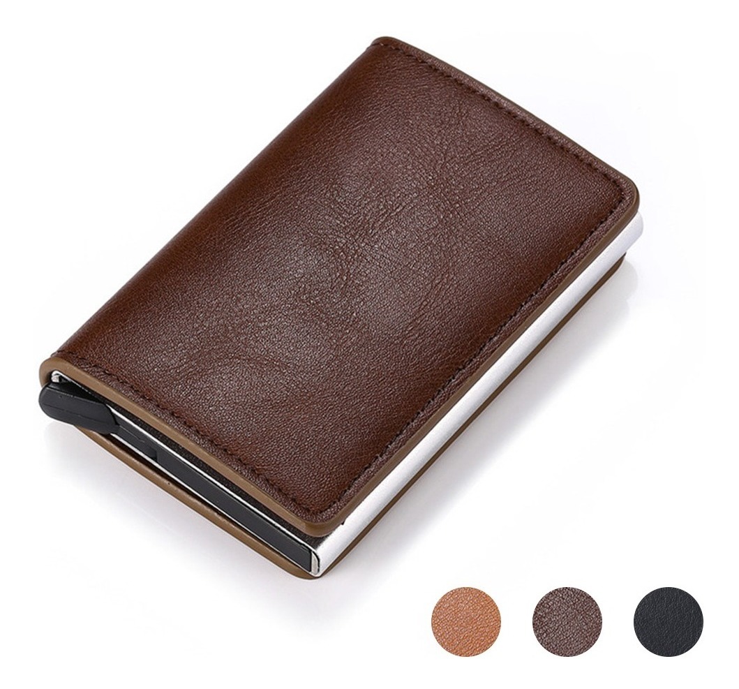 Porta Tarjetas De Metal Rfid Cuero Sintetico