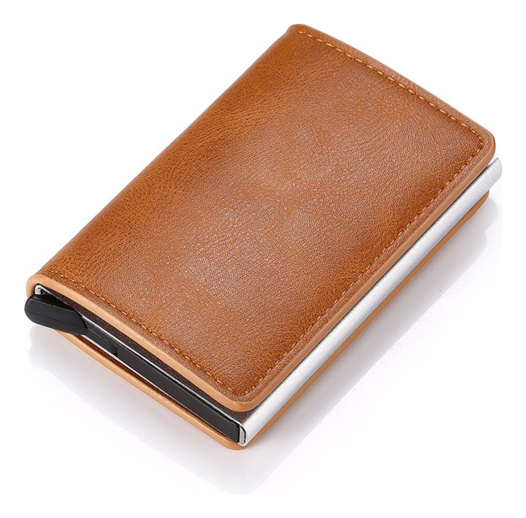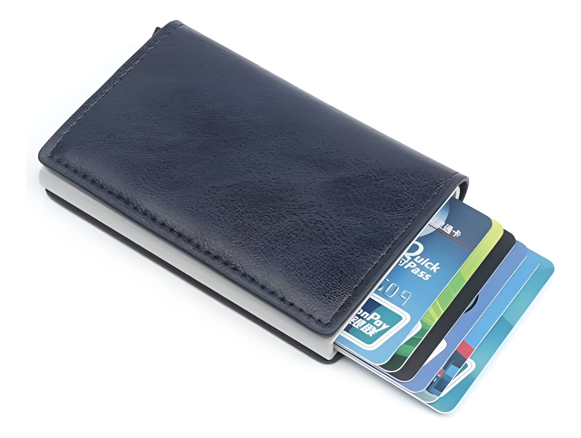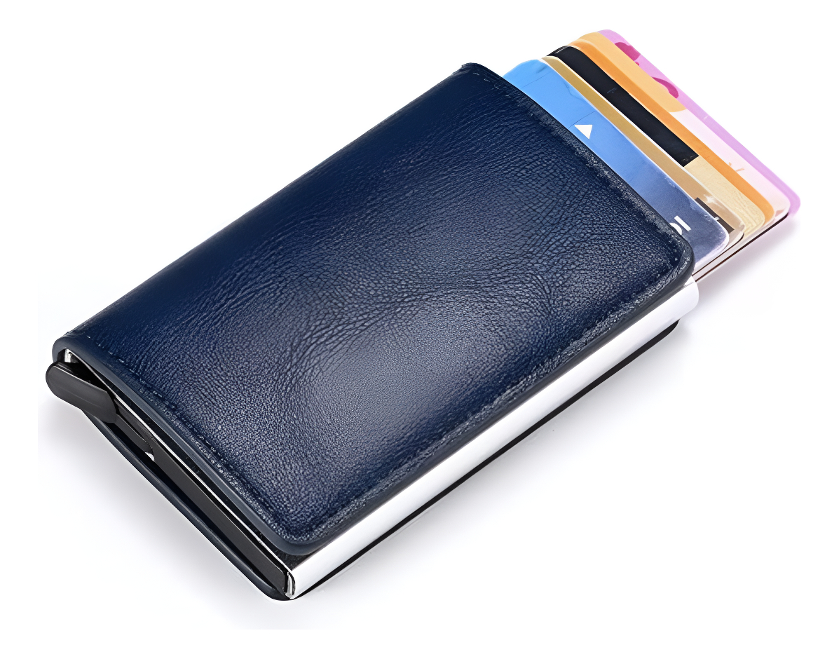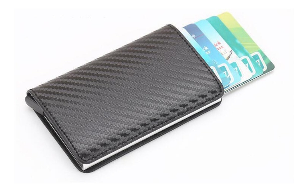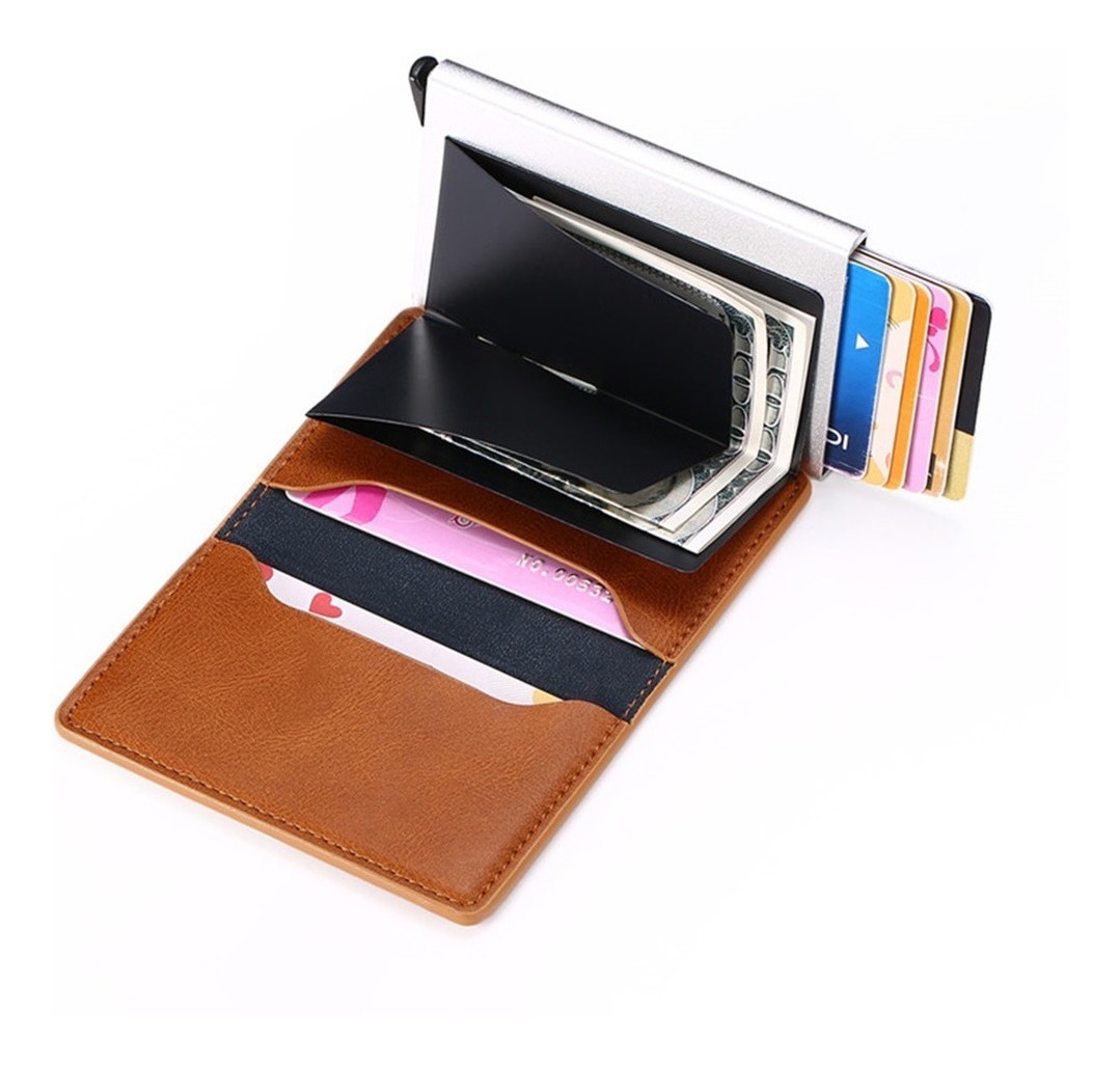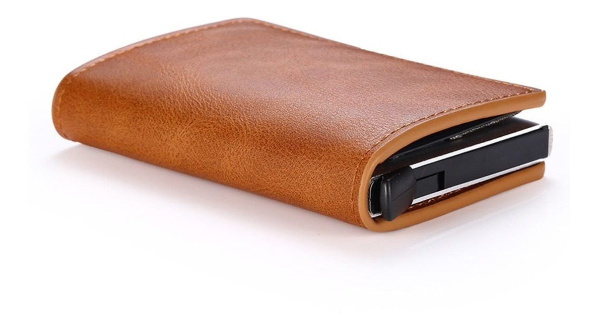 Porta Tarjetas De Metal Rfid Cuero Sintetico