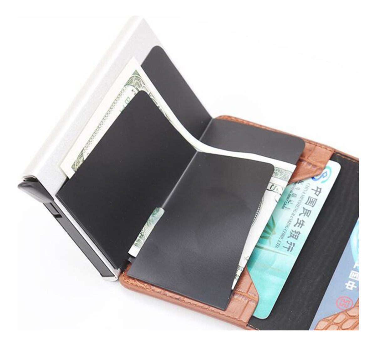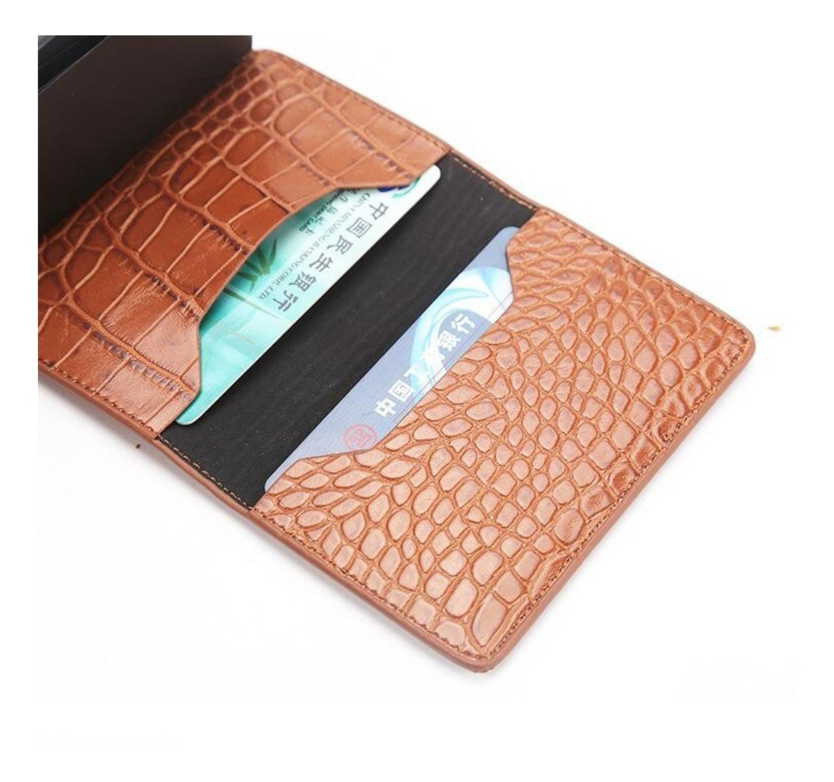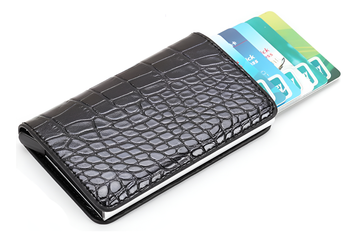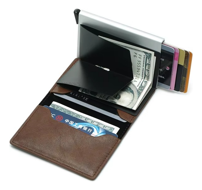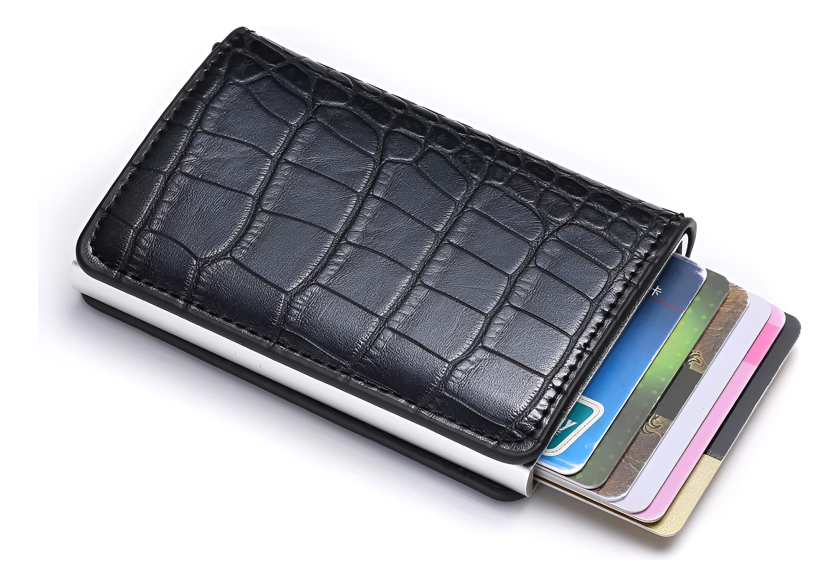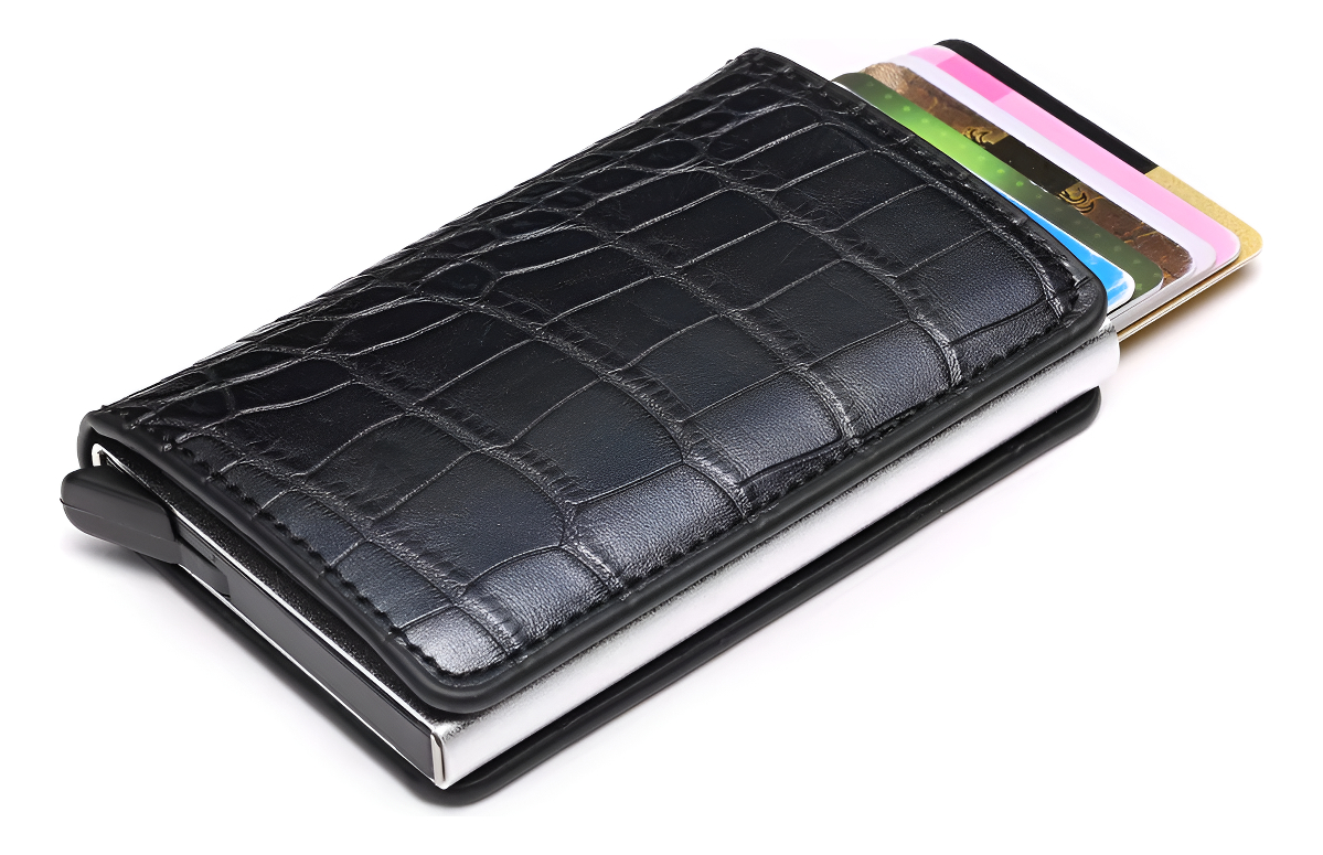 Porta Tarjetas De Metal Rfid Cuero Sintetico