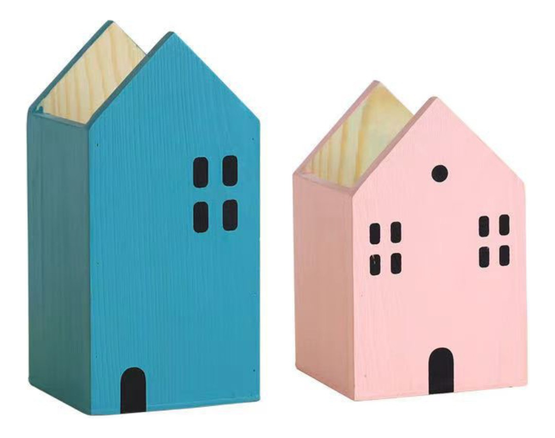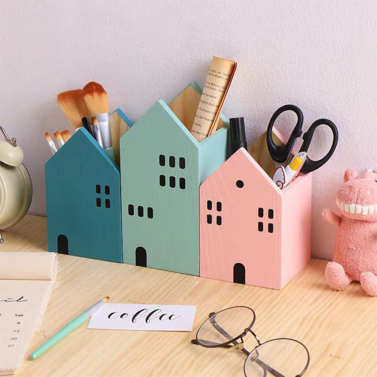 Portalápices Organizador de Madera para Escritorio con Diseño de Casitas, ideal para mantener tus útiles ordenados con un toque decorativo. Fabricado en madera resistente, su diseño en forma de casitas aporta calidez y estilo a cualquier espacio. Perfecto para lápices, bolígrafos y otros accesorios de oficina o estudio.