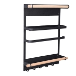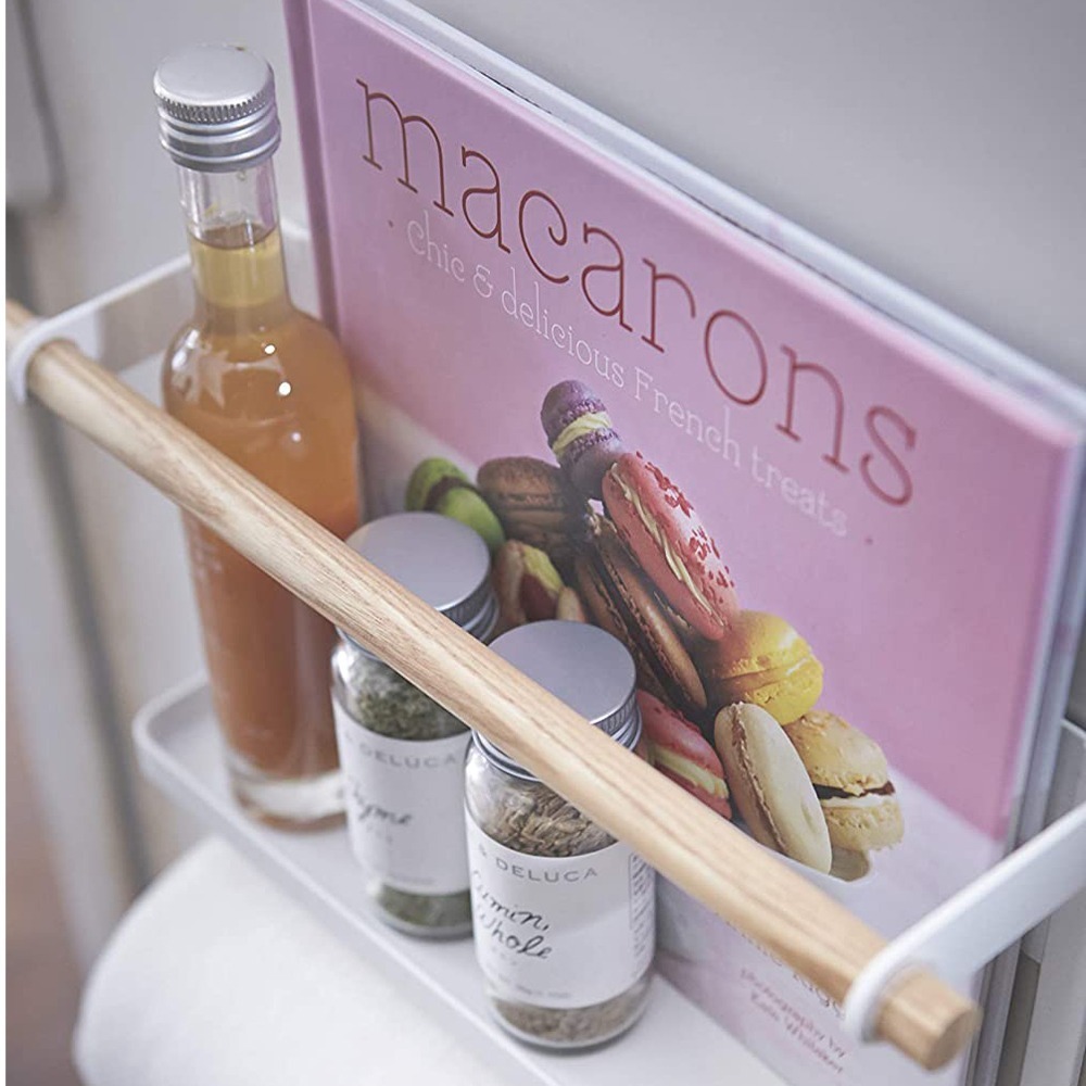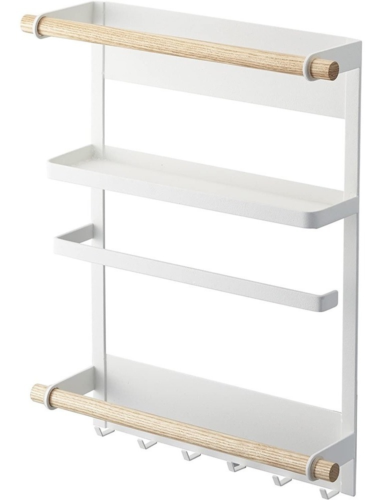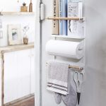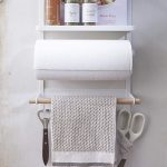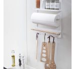 Portarollo para papel de cocina con repisa para colgar en barra, en acero pintado. Este producto pertenece a la línea de accesorios colgantes de cocina, la practicidad que te permite organizarte y ganar espacio en el área de trabajo de la mesada. Medidas: Altura 34 cm / Ancho 27,5 cm / Profundidad 7,5 cm Material: Acero pintado. Resiste hasta 10kg de peso.