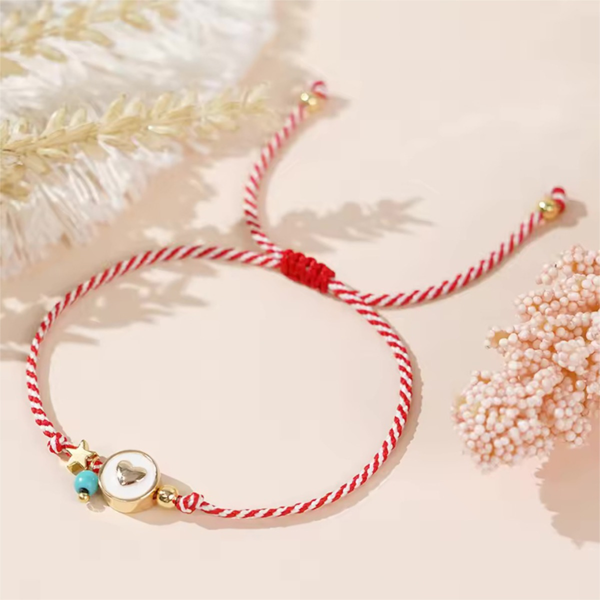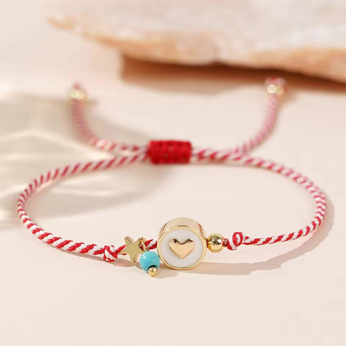 Pulsera Ajustable De Hilo Con Eslabon Corazón Individual