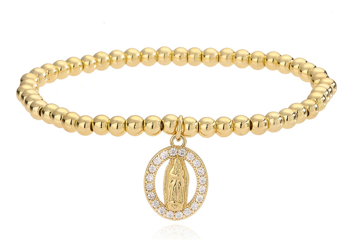 Hermosa pulsera con un elegante dije de inspiración católica, perfecta para quienes desean llevar un símbolo de fe con estilo y sutileza. Su diseño delicado la hace ideal para uso diario o como un regalo especial.