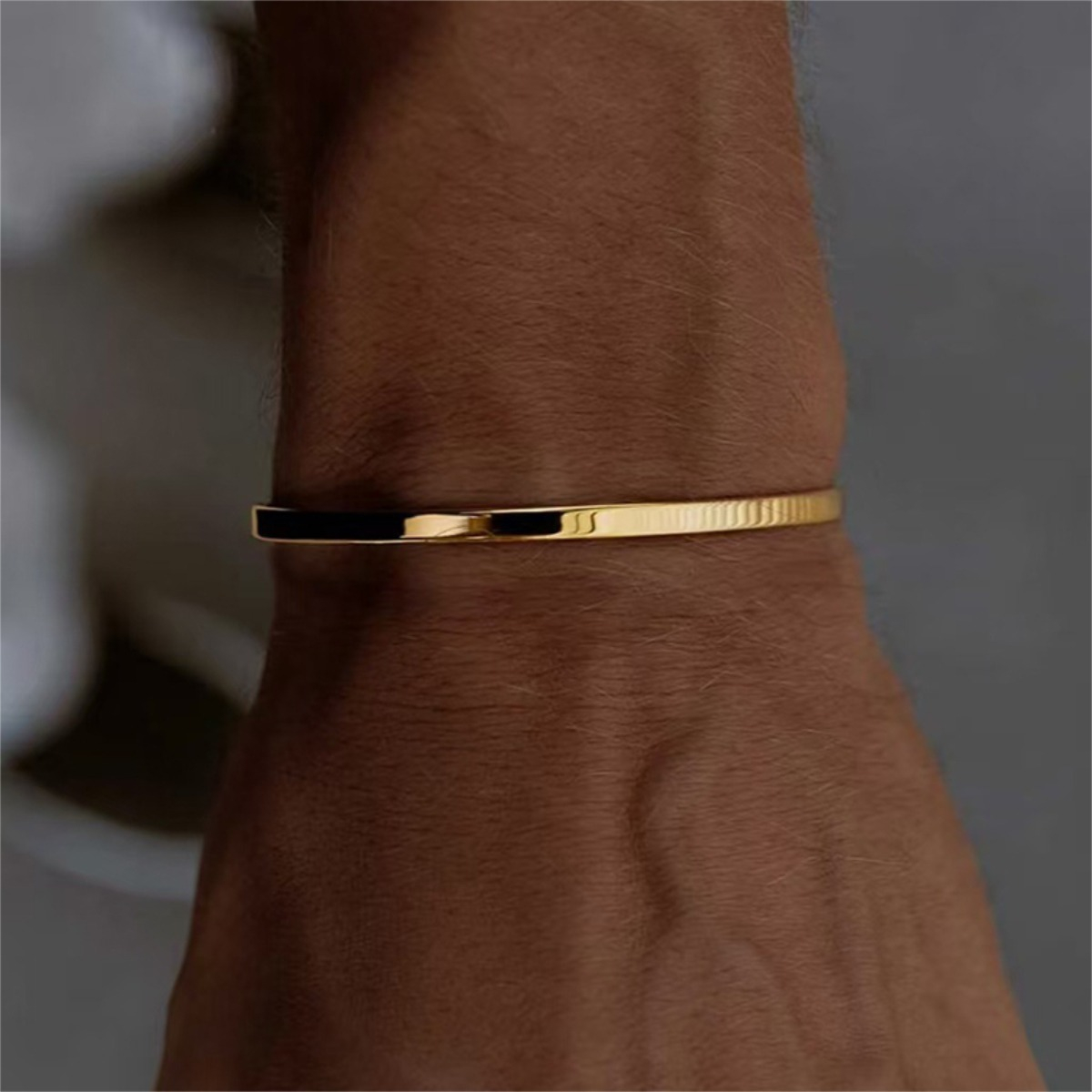 Elegante pulsera esclava de diseño recto y fino, elaborada en acero de alta calidad. Su acabado liso y minimalista la convierte en un accesorio versátil y sofisticado, ideal para complementar cualquier estilo, tanto en ocasiones especiales como en el día a día.