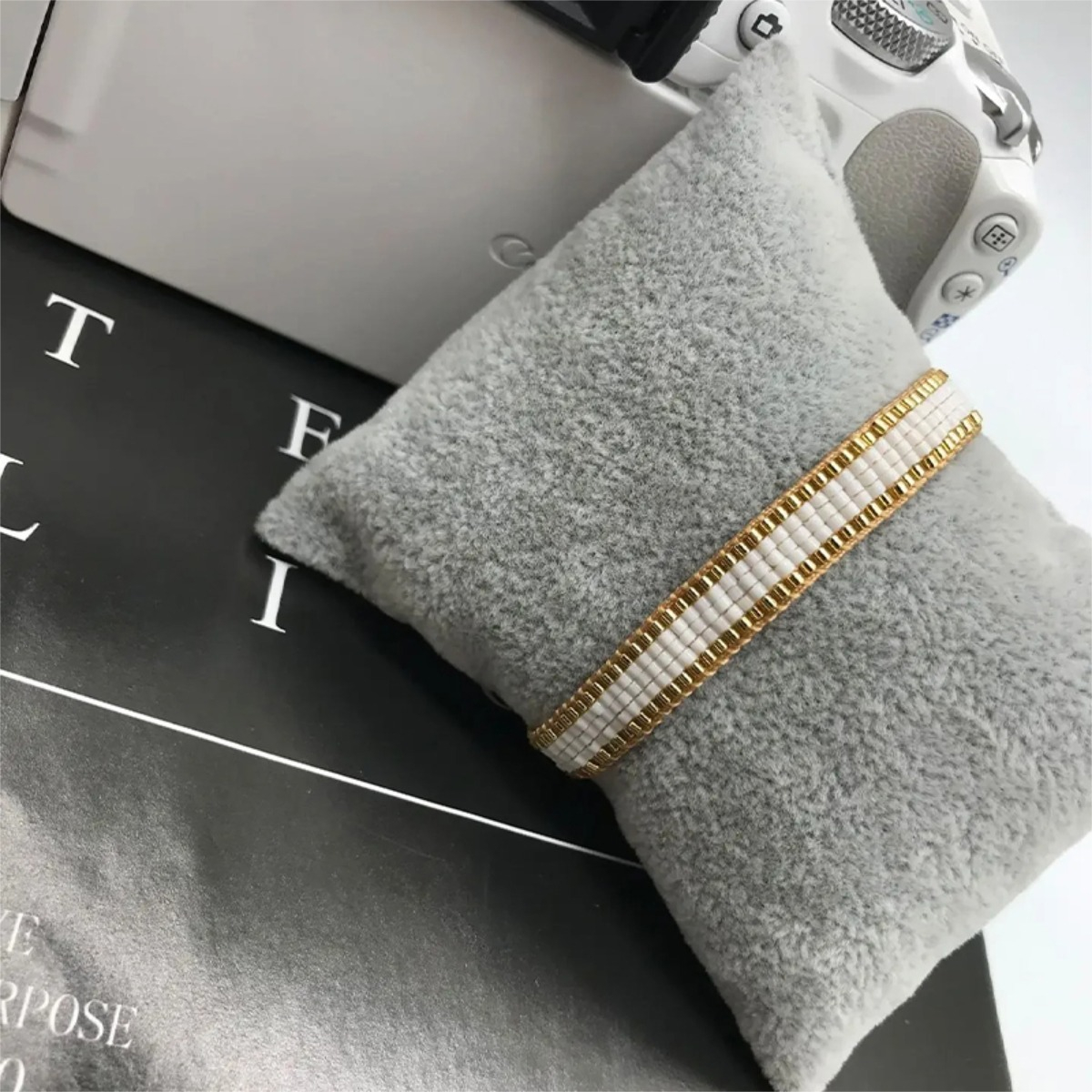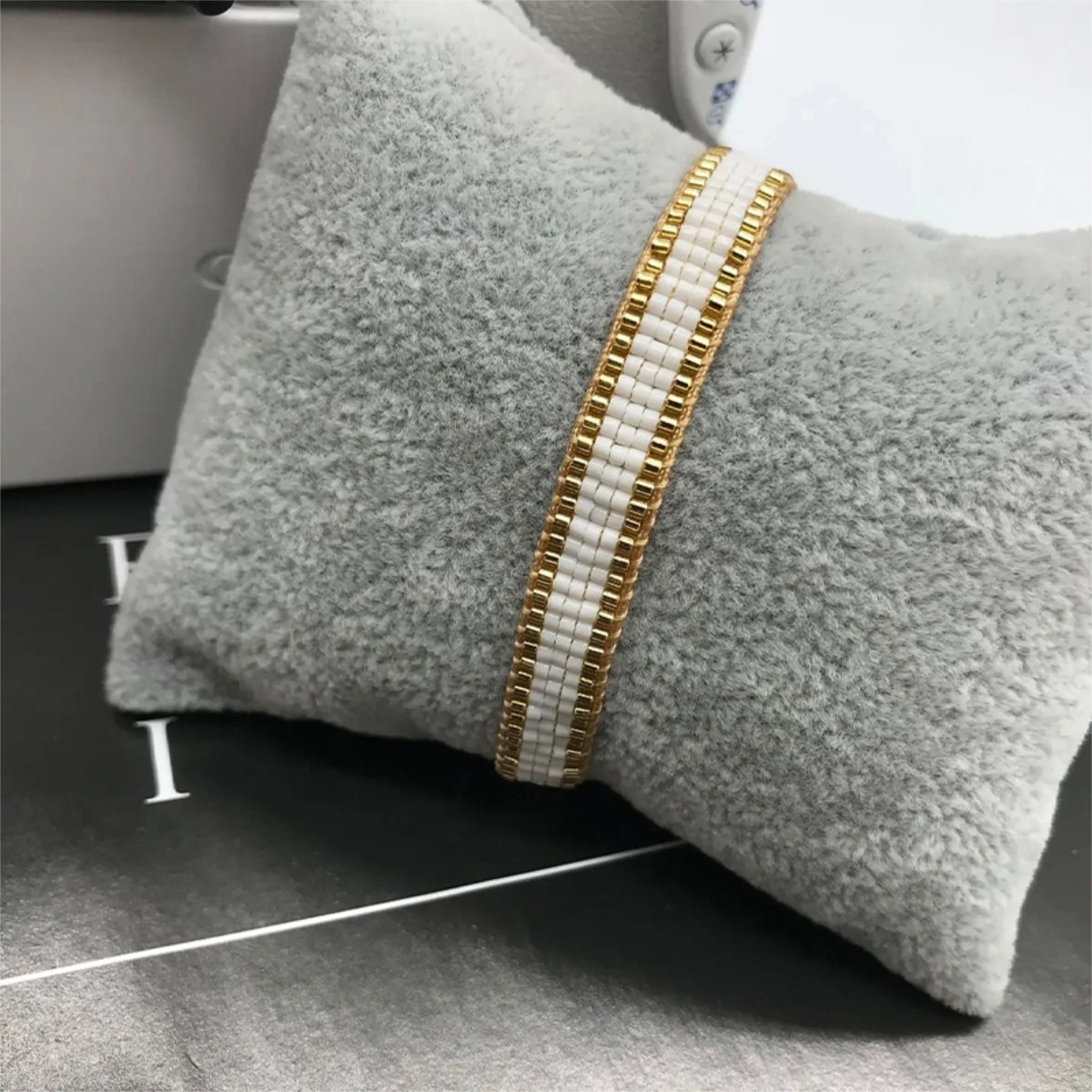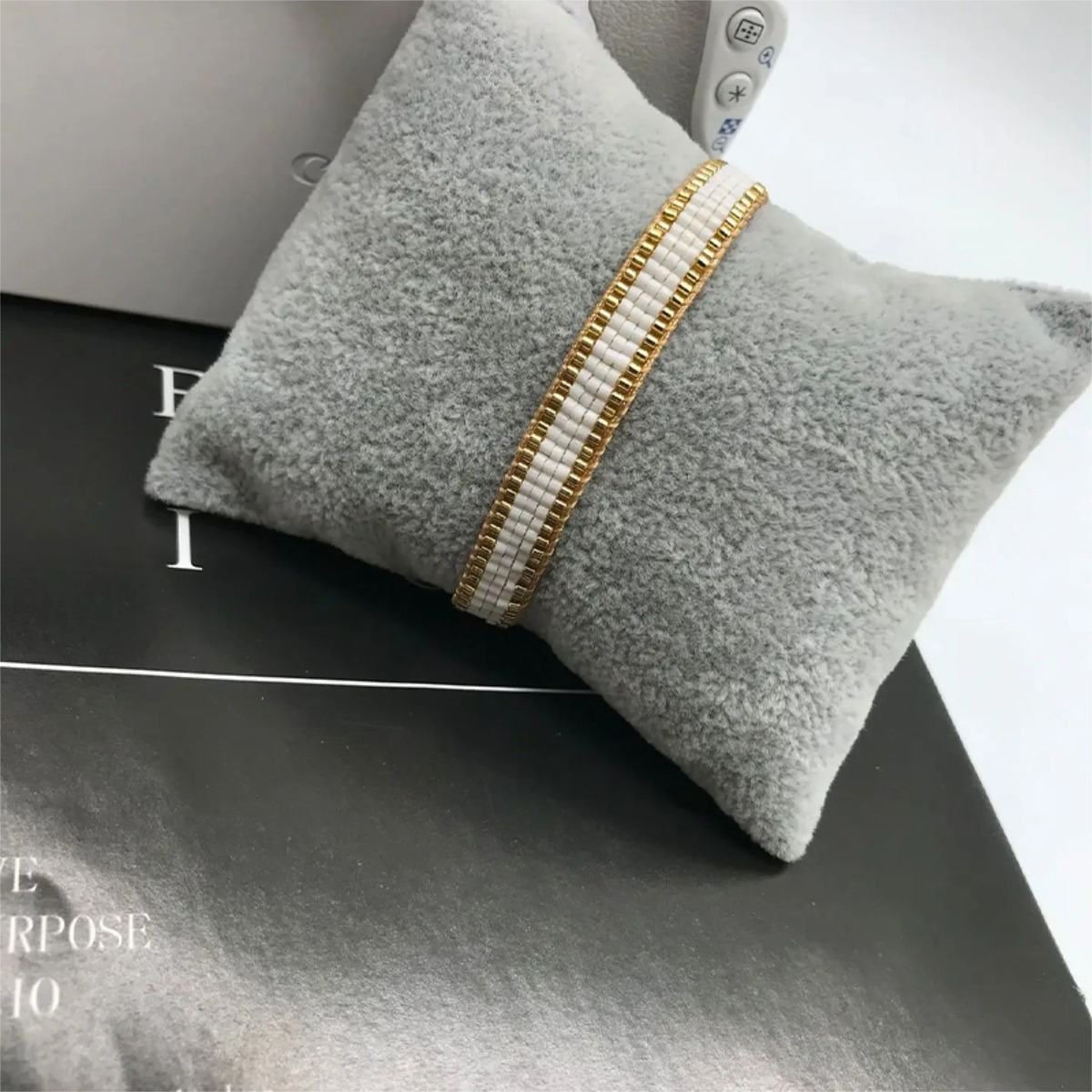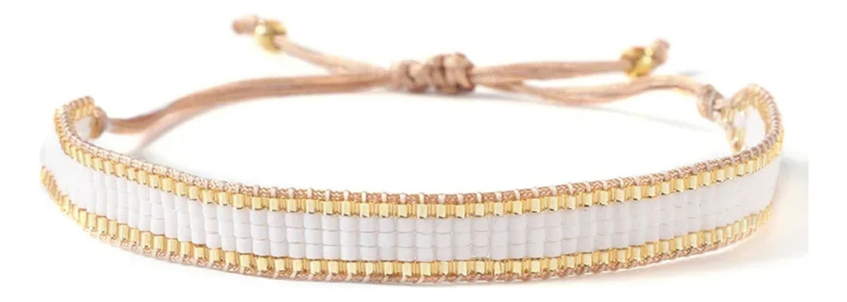 Pulsera Gold Mostacillas Vidrio Diseño Ajustable