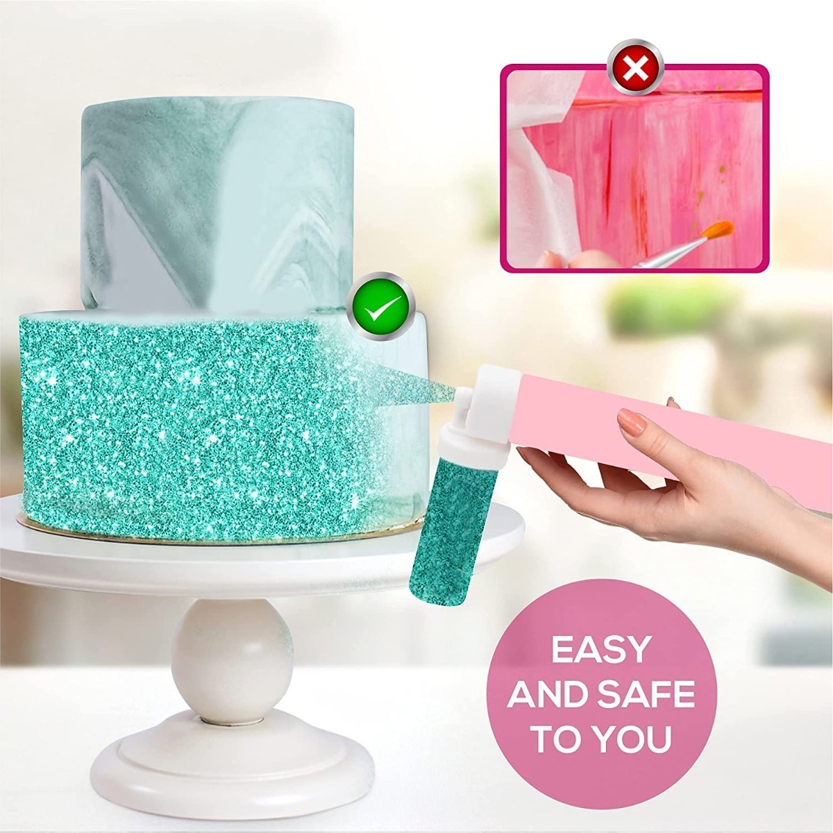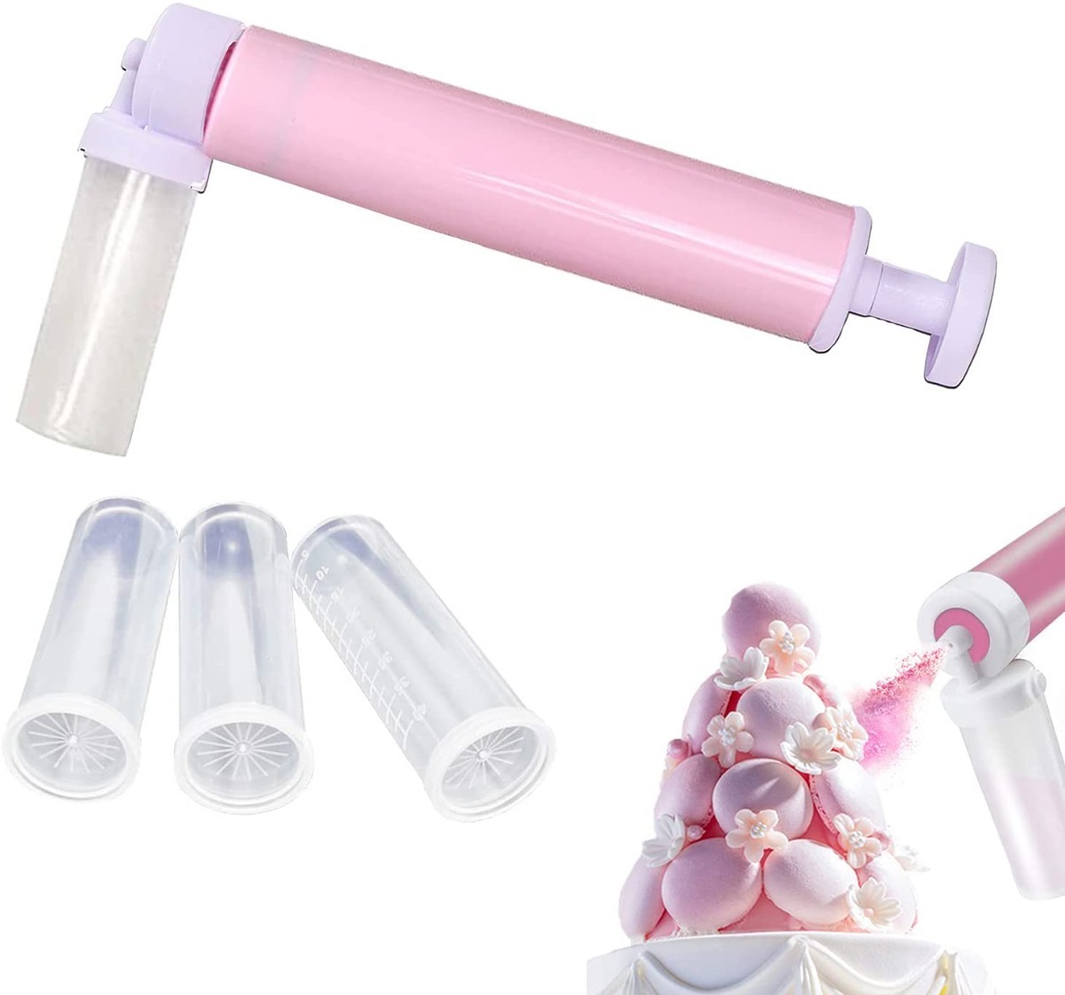 – La seguridad es lo primero: material de alta calidad para garantizar la seguridad y durabilidad – Pulverizador multifuncional: una práctica herramienta de decoración de pasteles que te permite aplicar pintura y purpurina rápida y fácilmente en tartas, cupcakes, galletas, chocolates, fondant, pasteles, pasteles de azúcar y otros postres – Fácil de usar: la pistola de pulverización manual está equipada con un pulverizador de bomba y 4 depósitos. Utiliza el aerógrafo manual para aplicar fácilmente pintura o purpurina en tartas, cupcakes, postres y otras creaciones dulces en minutos – El kit y regalo perfecto: los kits de decoración de pasteles están hechos de material de alta calidad. Como suministros de decoración de pasteles para niños o amigos, o un regalo para ti, todos te enamorarán de este juego de decoración.